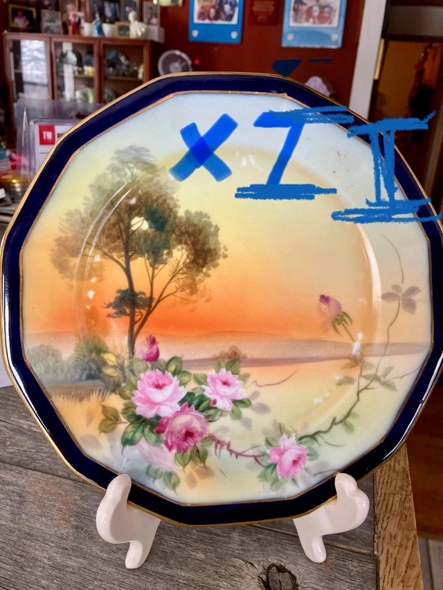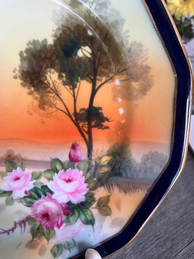 2211 vintage Nippon porcelain plates exquisite hand-painted details, plates beautiful sunset floral natural scene. Nippon brand is well-known for their attention to detail and quality craftsmanship, Whether displayed on a wall or used for special occasions, the vintage hand-painted plates is sure to impress