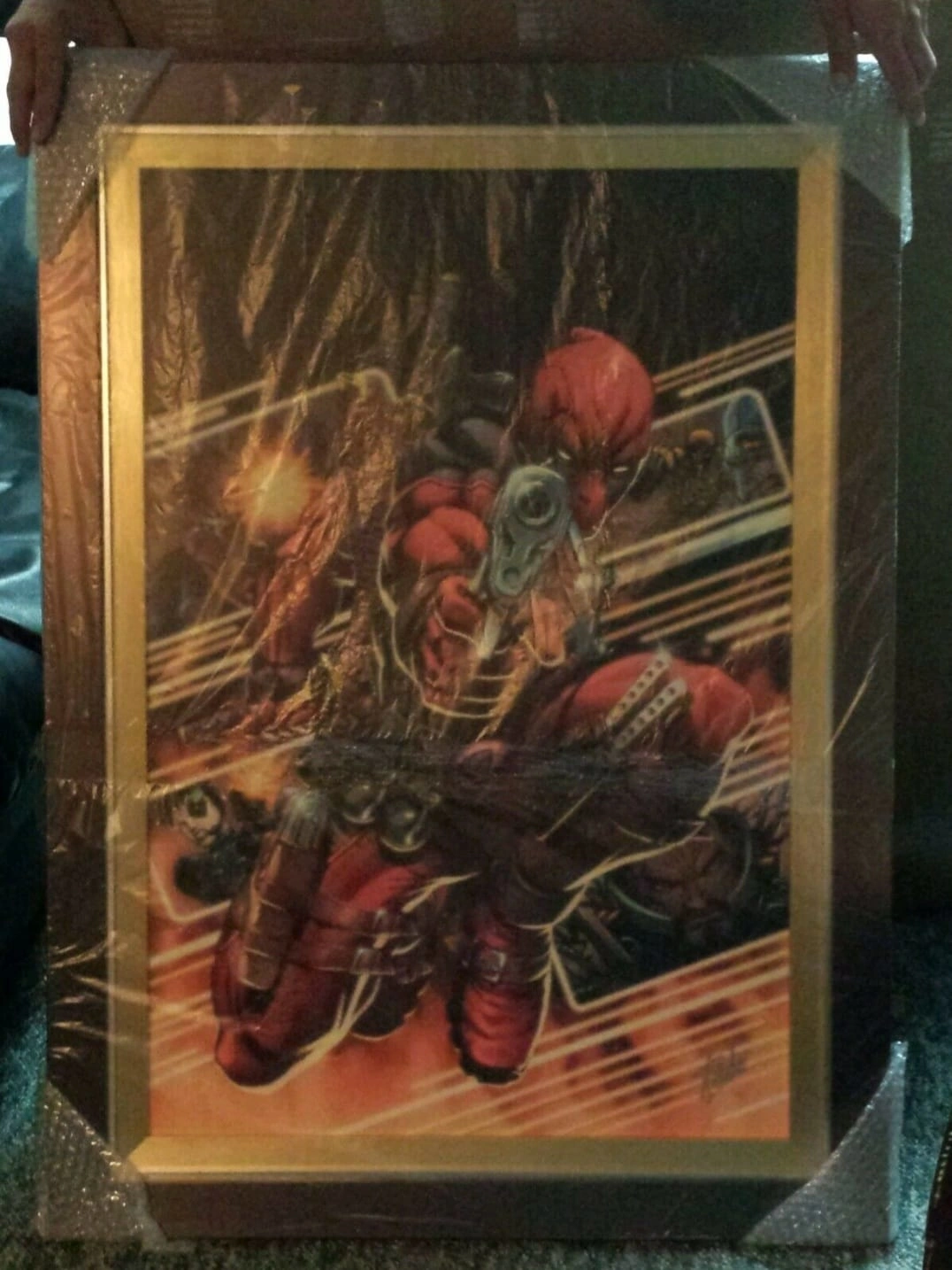 Up for grabs is for both a 22" x 32" giclee print on canvas painting and a Signature Series CGC Graded 9.8 Comic Slab of Marvel's Cable and Deadpool issue #8 (2005) both signed by the late, great STAN LEE!!!