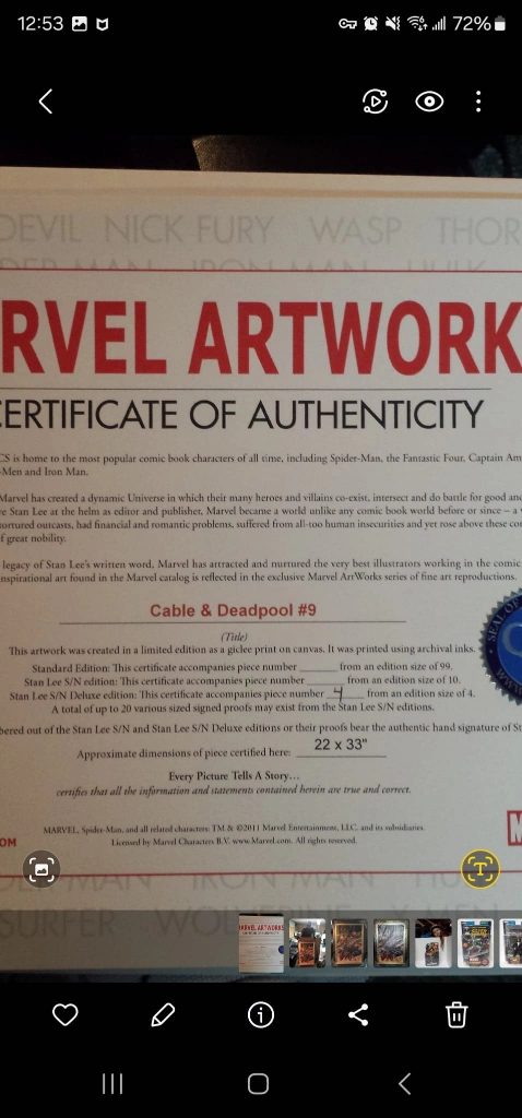 Please see images for online appraised value for the 18" x 27" version, print run of 99, without the Stan Lee signature ($ in USD).