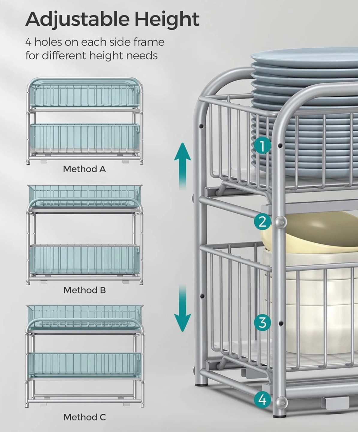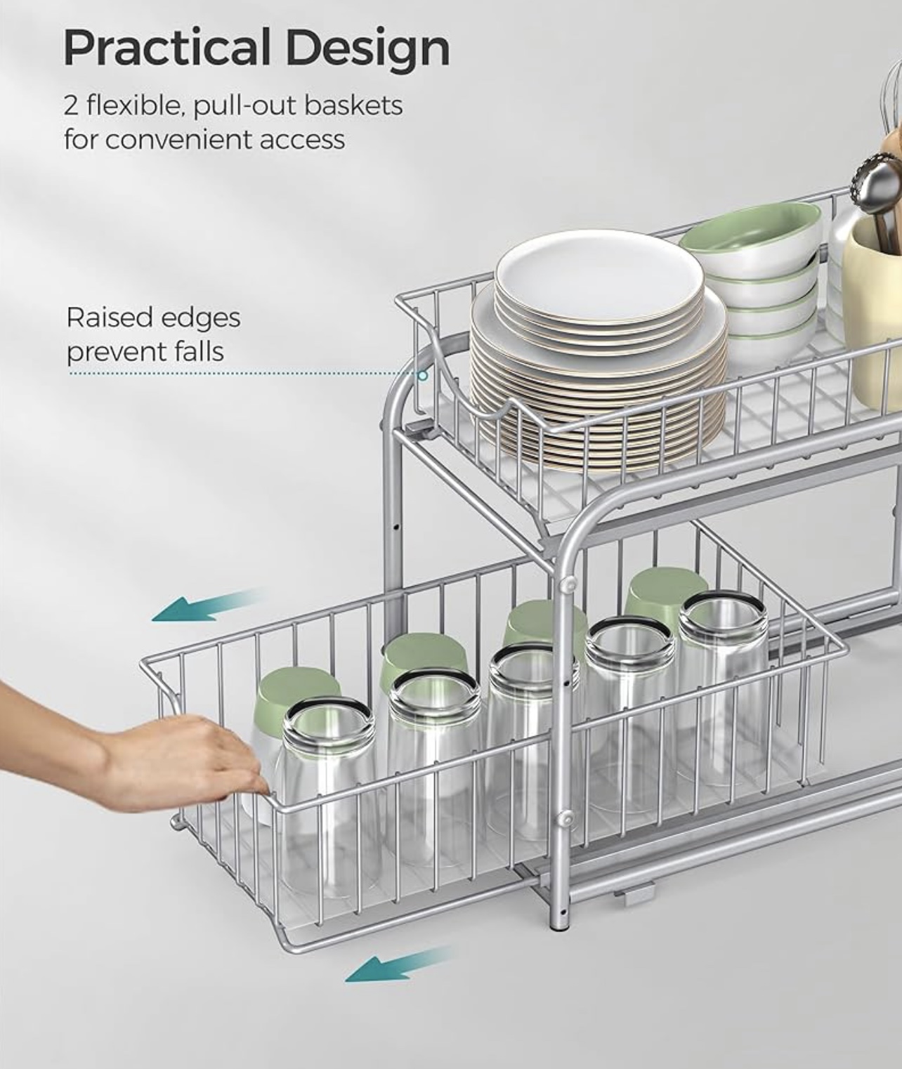 96For those who seek convenient storage, these 2 pull-out basket drawers make it easier to access everything without having to dig. Each drawer also comes with a PP sheet for added stability for small items and easy cleaning