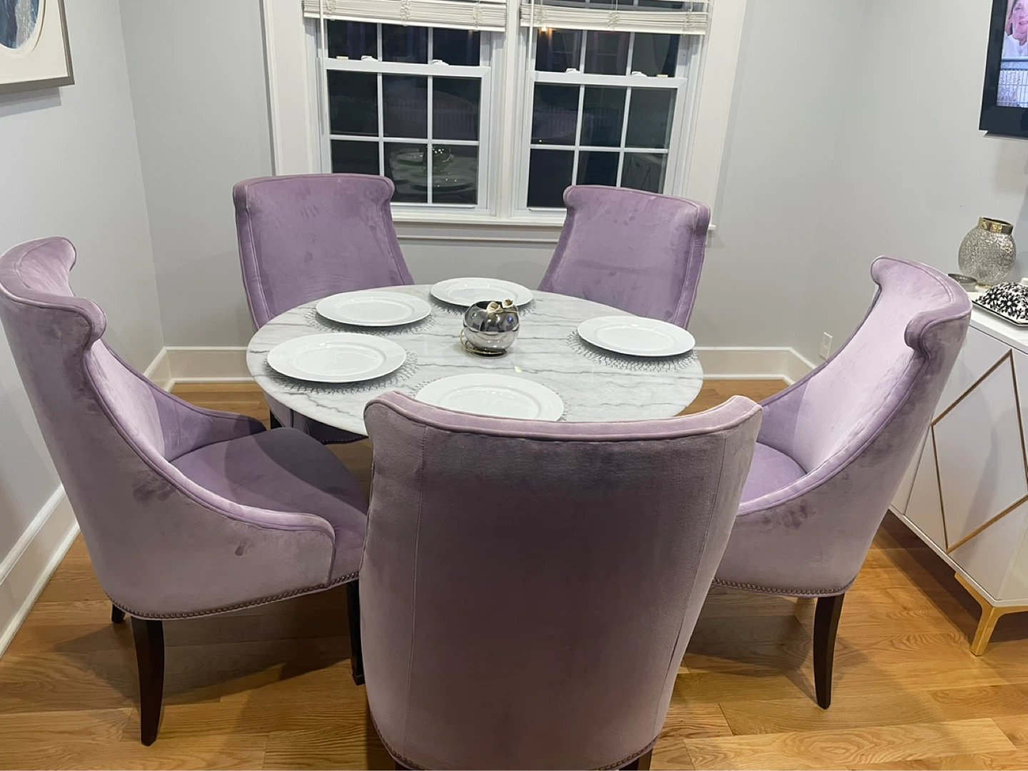 1 / 21 / 2Buy & Sell6 Velvet Chairs6 Velvet Chairs$576Six custom made light purple chairs for a dining table! In very good condition. Dining table not includedConditionLike newWHERE TO MEET79 Pratt StView MapSELLERLeaIona University100 reviews1 chats·0 favorites·58 viewsSEND CHAT TO SELLERHi Lea! I’m interested in your listing.Hi Lea! I’m interested in your listing.Get the Karrot app to chatSign In to chat