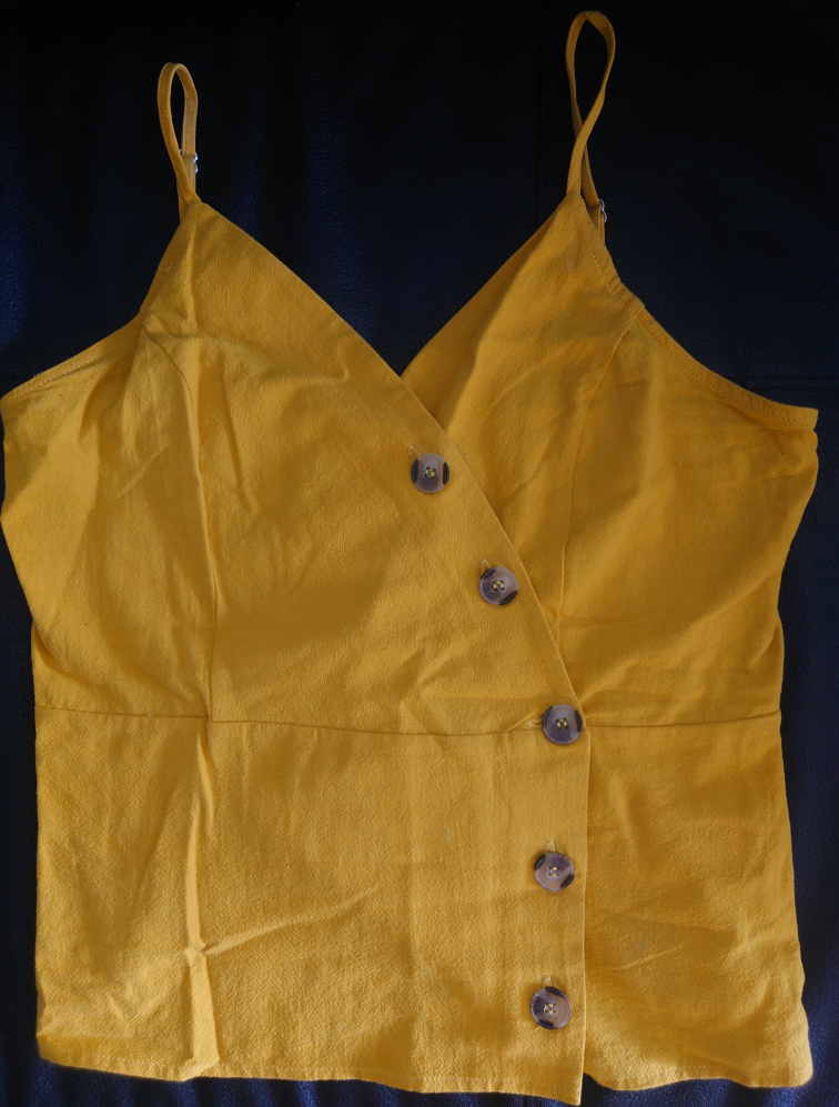 803Blouse with adjustable straps Yellowish mustard colour V neck with bottons