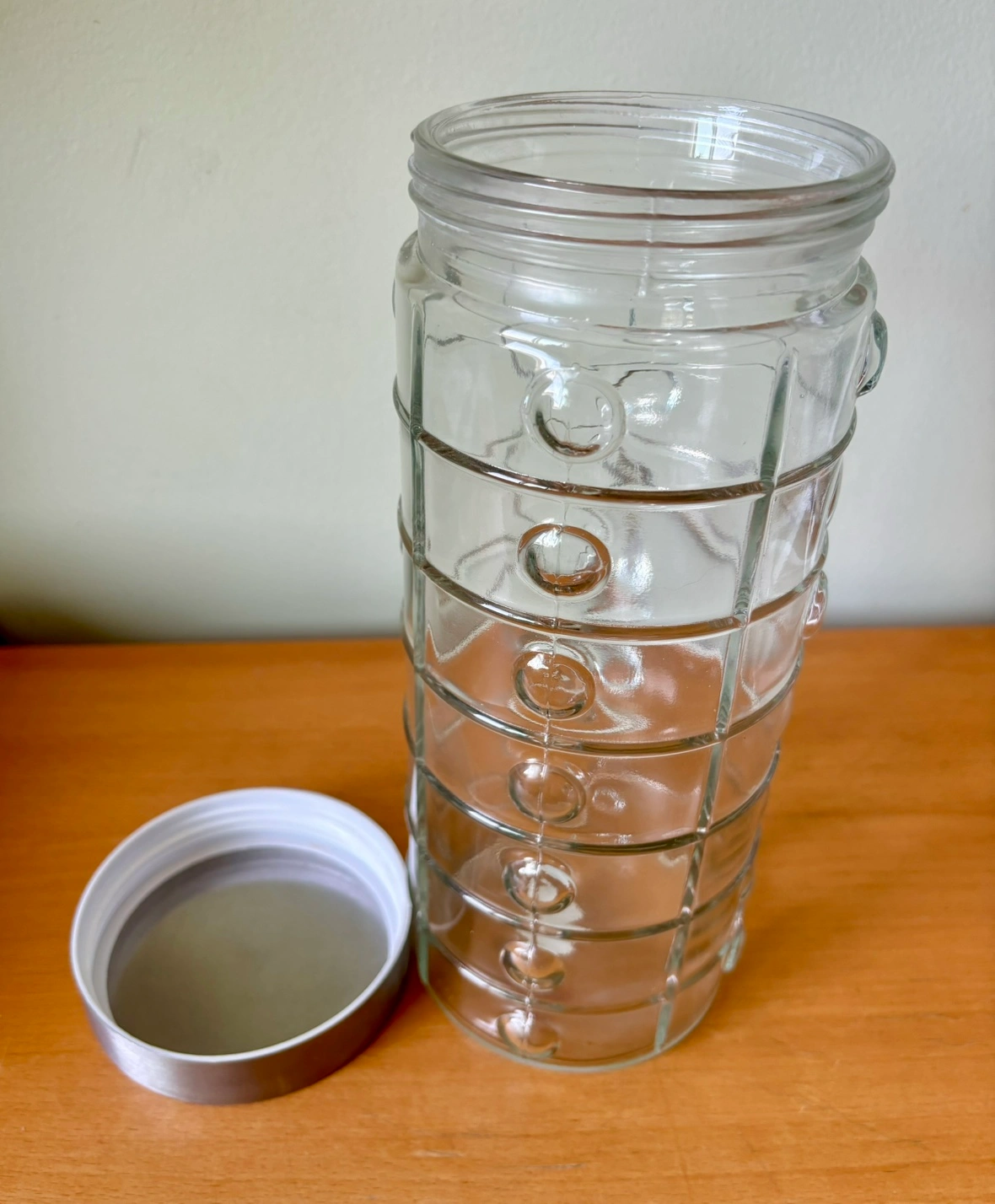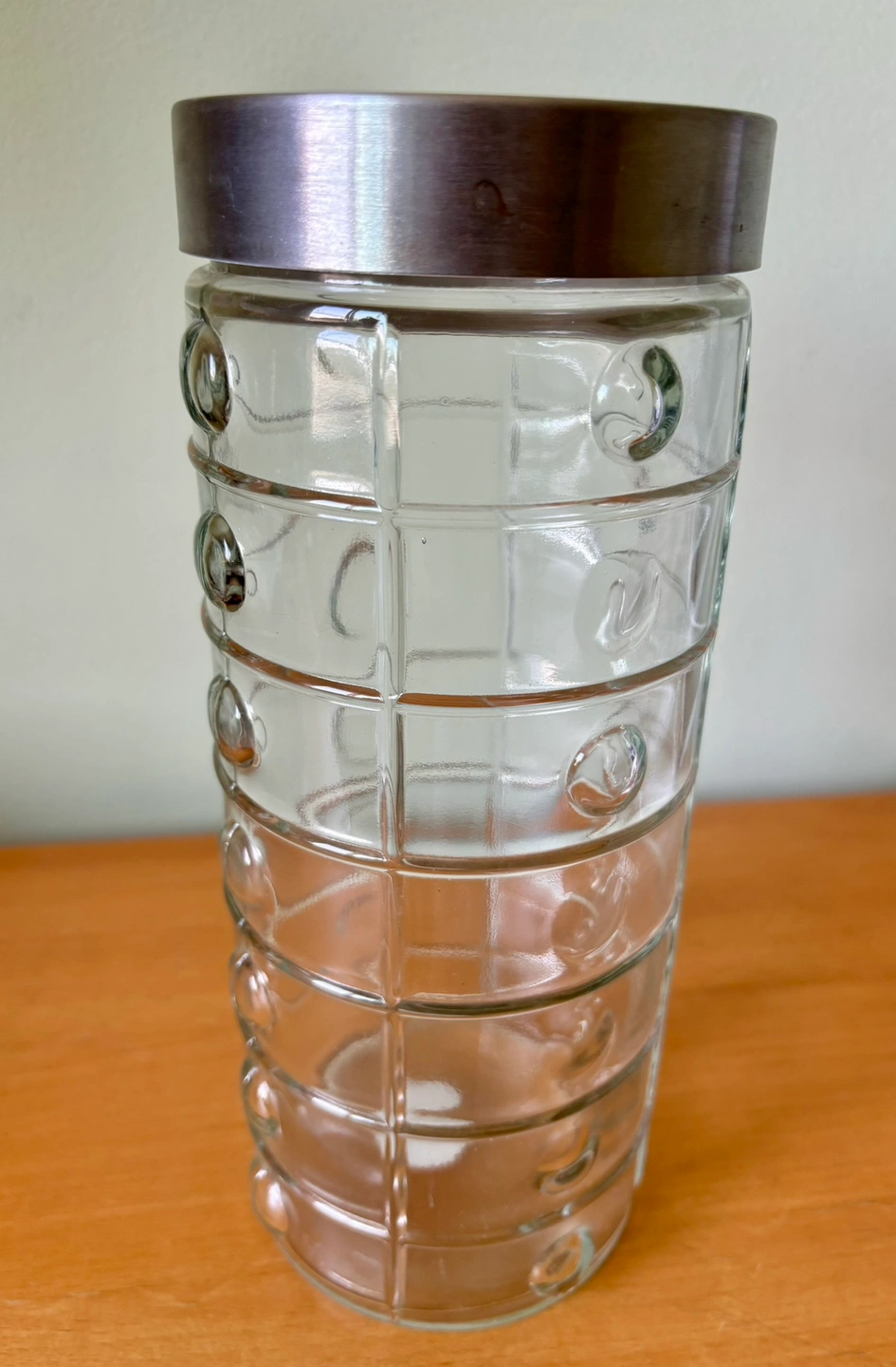 1000+Price is for the thick glass canister (Iβve donated the bag of Spaghetti to the food bank). The glass jar has a metal lid. It has a square grid design and rounded bumps around the edge; can also be used as a vase for flowers πΈ πΊ π Click on my name for my other listings and pickup locations.