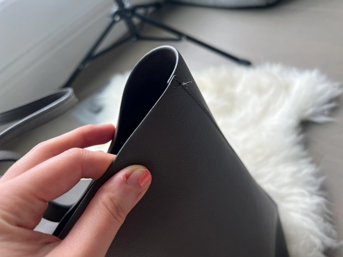 This is the east west tote bag from Saint Laurent. It has been pre-loved but still has a lot of life left. The only noticeable flaw is that one thread little bit coming out on the side. See picture. Comes with detachable pouch. No box or dust bag.