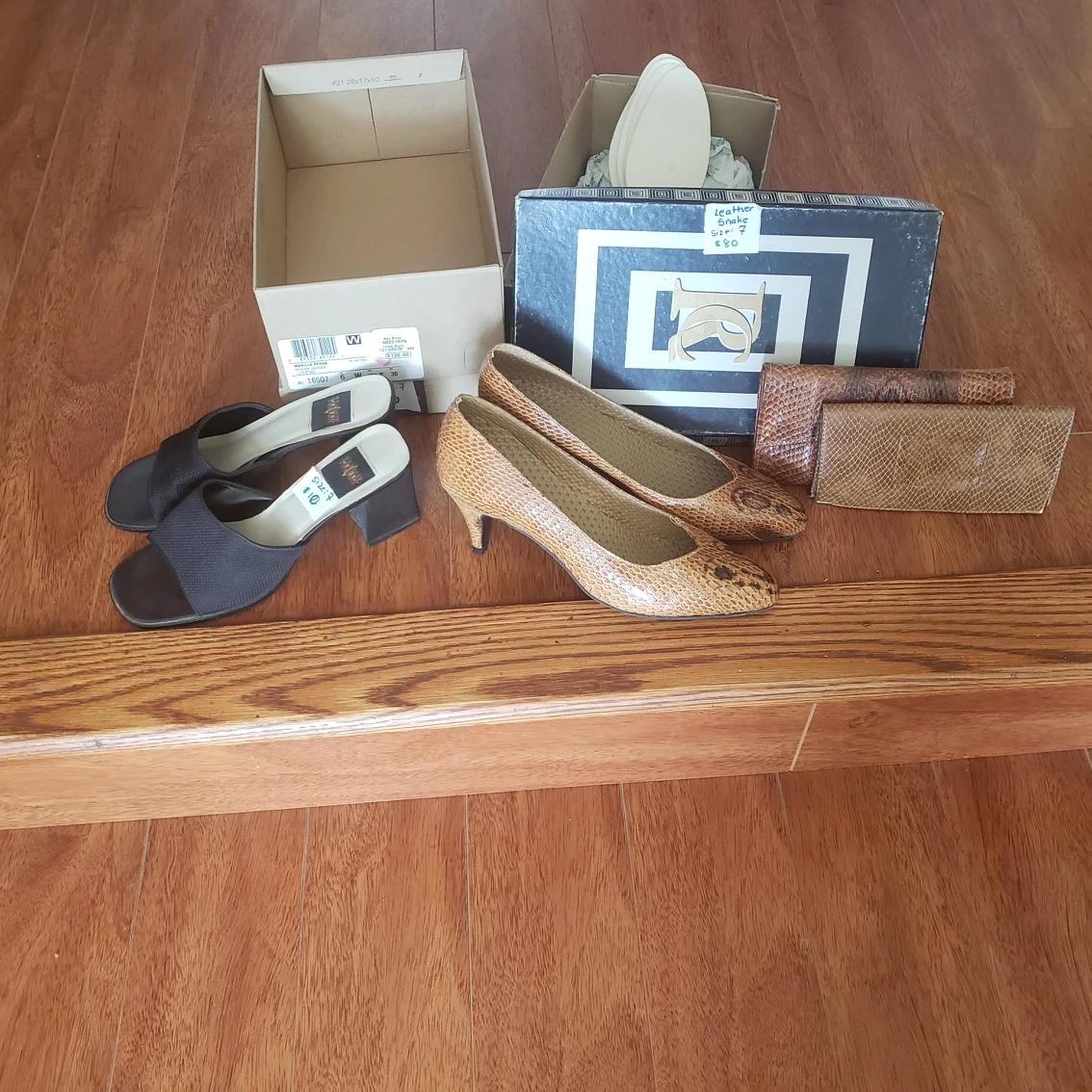 Ladies Brandnew Genuine leather-snake heeled shoes includes wallet/eyeglass case - $70...Size:7