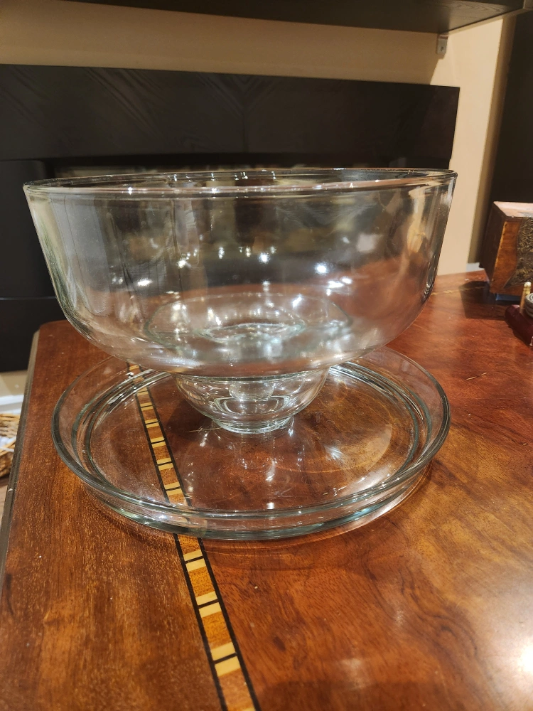 No chip or damage. Can be used as a cake stand or nacho tray or soup bowl.