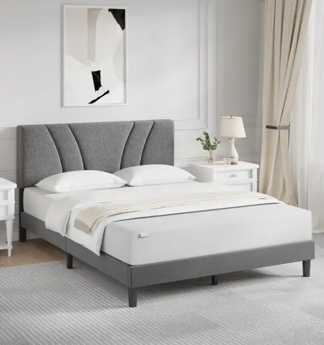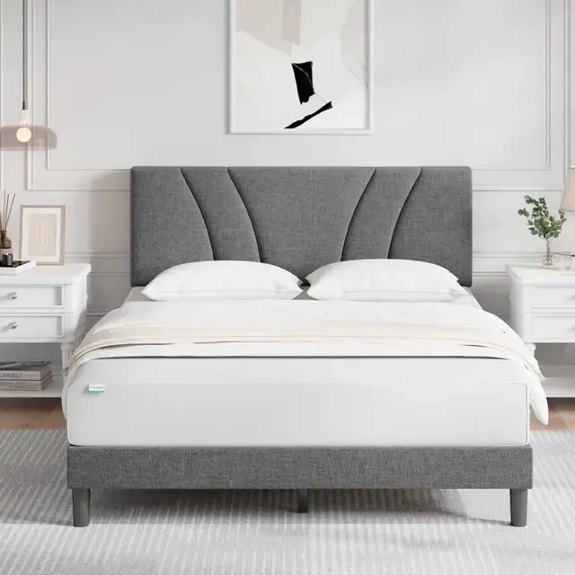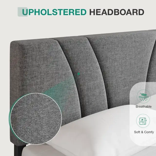 【Stylish and Comfortable】The queen size bed frame headboard is made of high-quality linen fabric with high-quality foam built in for a comfortable touch. The lines of the headboard are clean and sleek, minimalist, and perfectly complement any bedroom style, adding a touch of elegance and sophistication to your space.