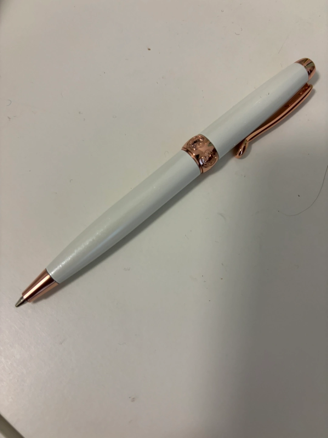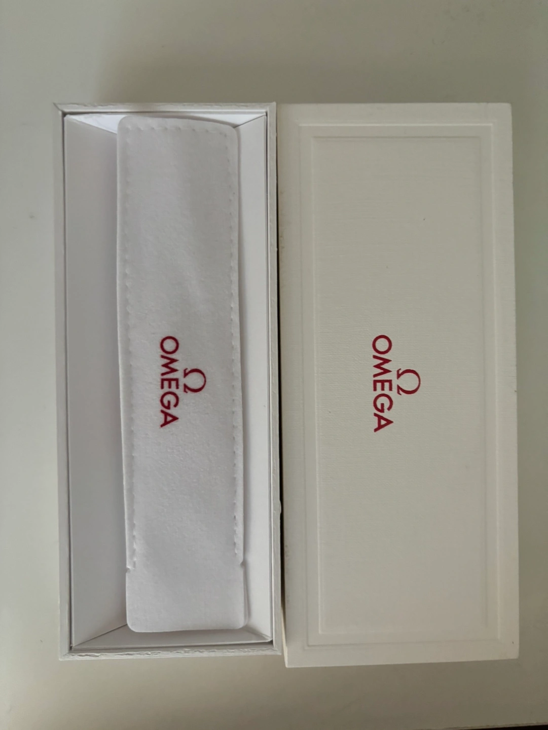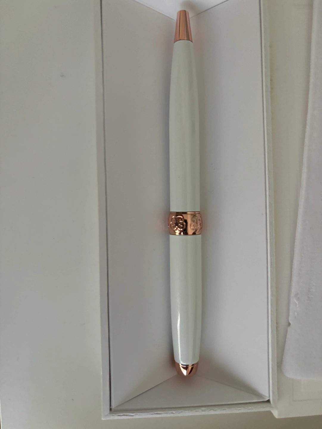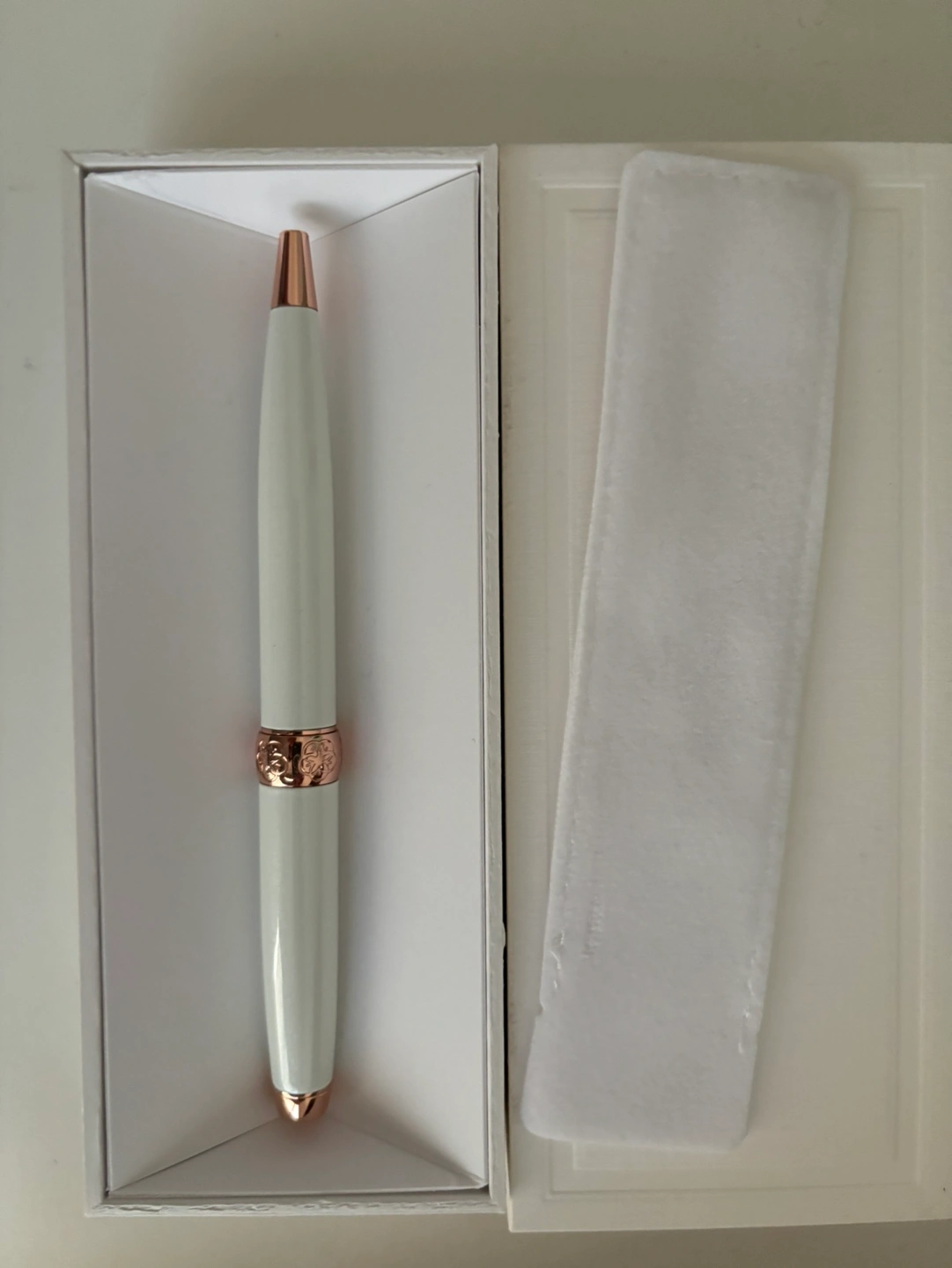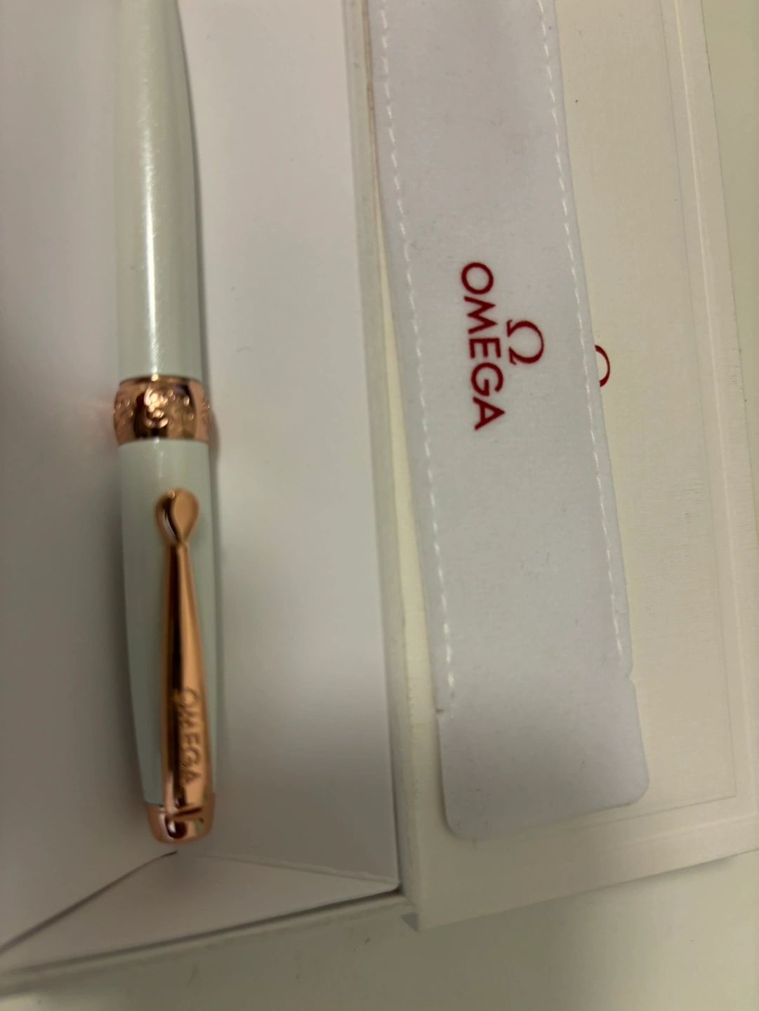 Brand new Omega executive ballpoint pen in original box with dust cover. In matte white with intricate bronze detailing. From Swiss luxury watch brand. Brand new, Mint condition completely unused