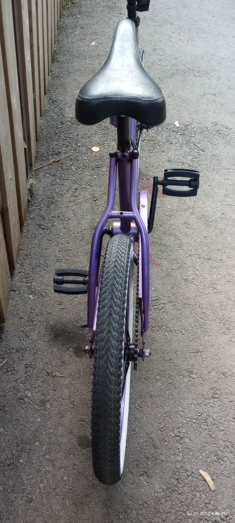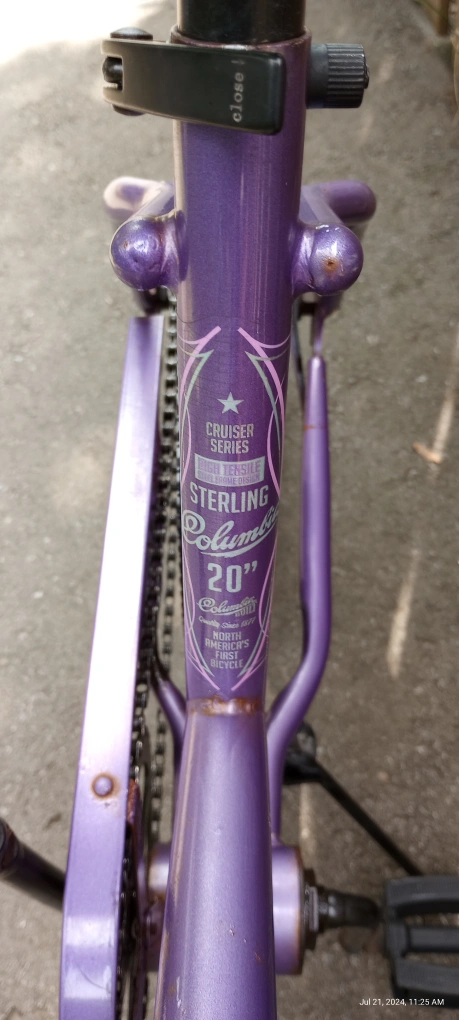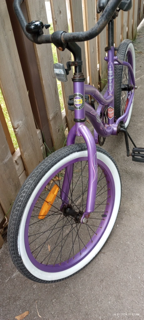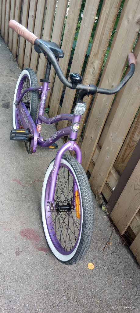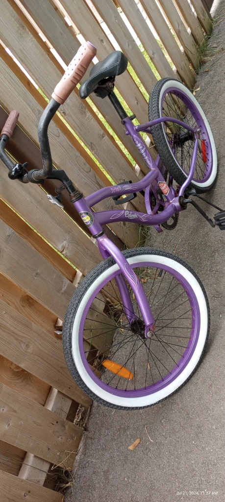 120Vintage girls Cruiser 20" wheels 15" frame height back pedal brake age 6-10 some rust spots rideable but needs more TLC $40