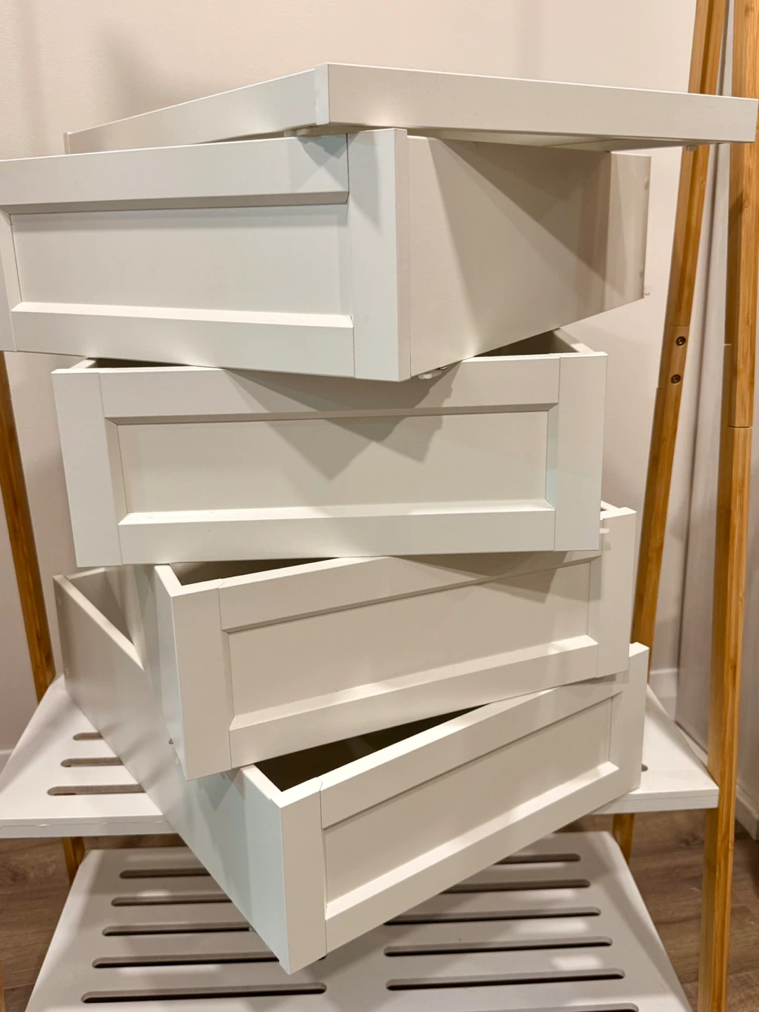 Giving away a bunch of IKEA Komplement drawers in white. (No hardware) they’re in great shape and ready to organize your space! Perfect for adding extra storage to your closet or wardrobe system. Check out the photos to see how it looks!