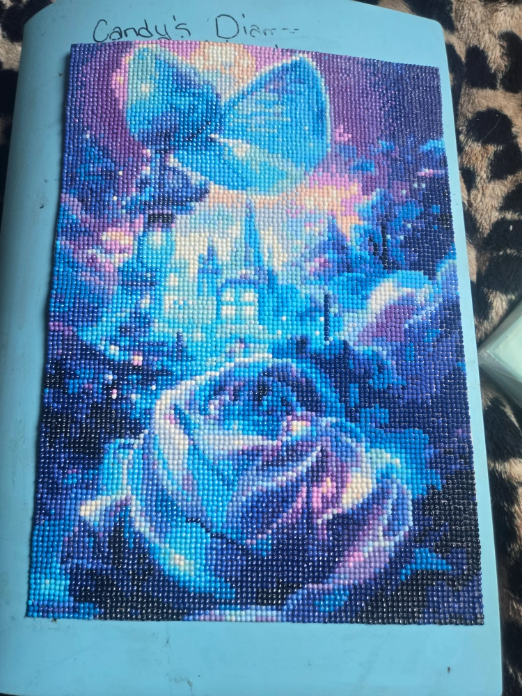 blue flower with castle diamond painting