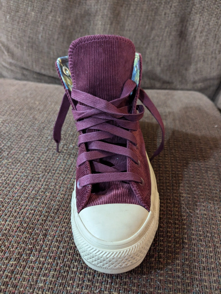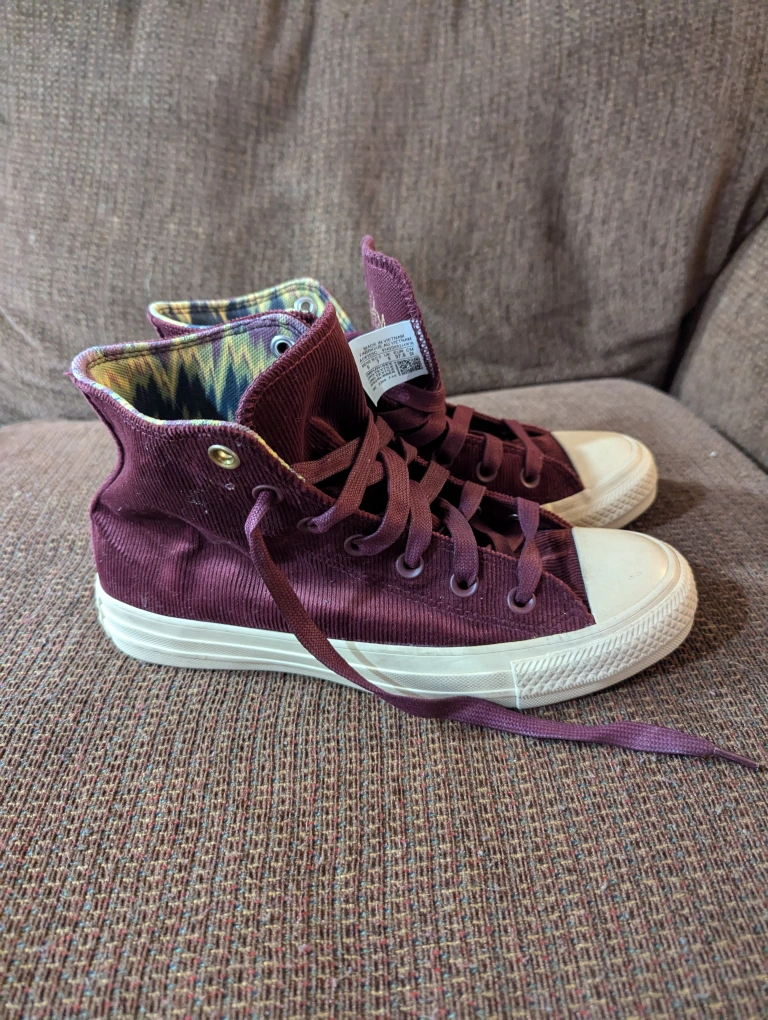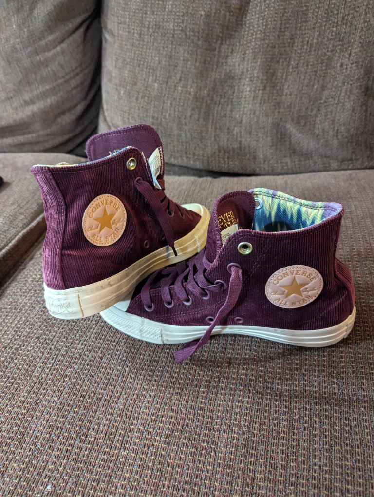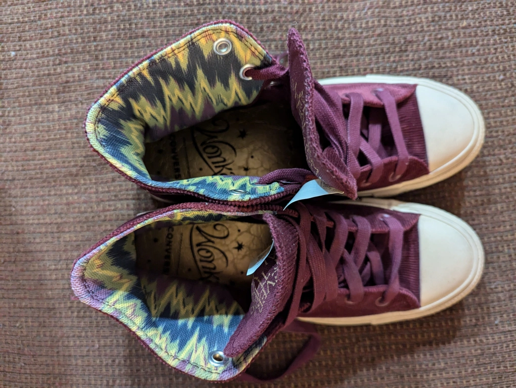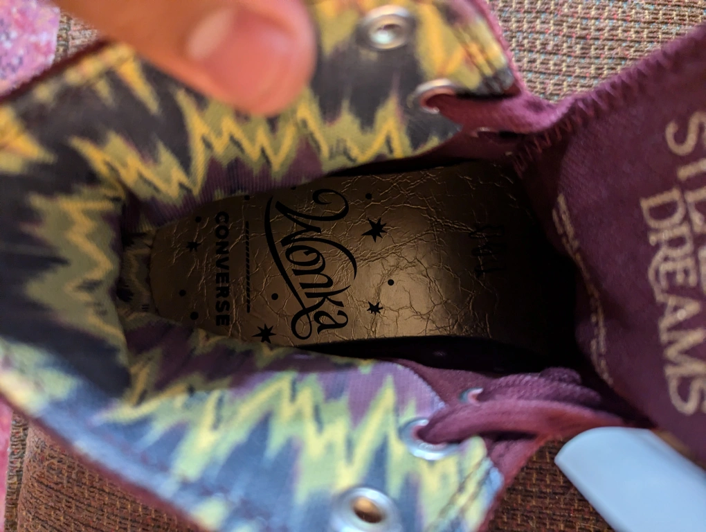 147Elevate your style with the Converse x Wonka Chuck Taylor All Star Corduroy High Tops! Featuring a rich dark brown hue with colorful trims inspired by Willy Wonka's iconic look, these sneakers combine premium corduroy material with timeless Converse design for a unique and whimsical flair.
