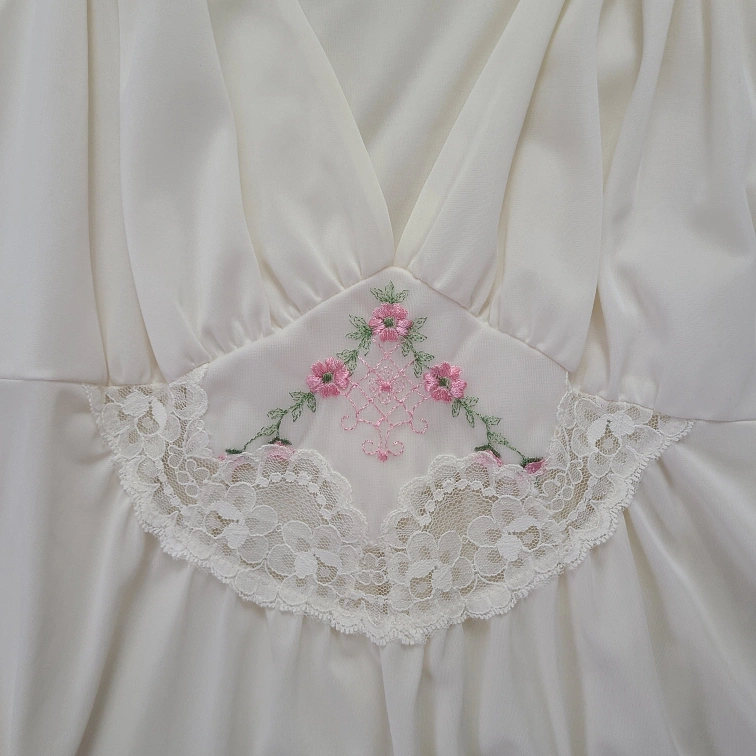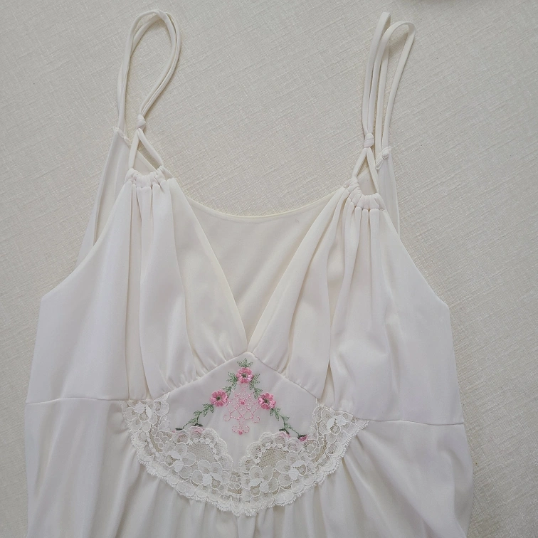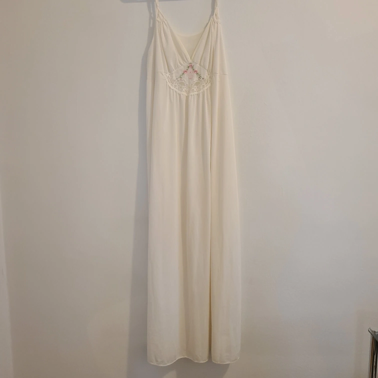 161Beautiful silky mooth slip dress with empire waist and flower embroidery. Meet up Astoria or Midtown.