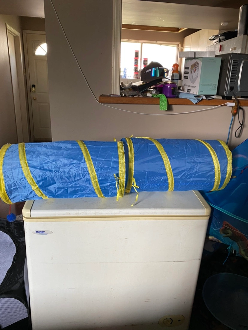 2 cat tunnels they have ties at the end to connect them to make a bigger tunnel. My cat only used it a few times then we got her a bigger one. Still in really great condition.