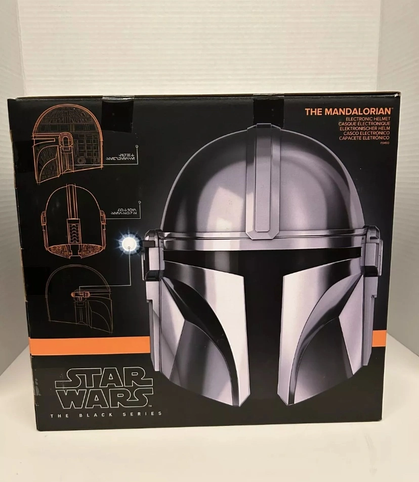 Star Wars The Black Series The Mandalorian Premium Electronic Helmet Prop Replica “This is the Way” This Mandalorian Helmet is a captivating collectible inspired by the iconic Star Wars saga. This helmet features realistic design, adjustable fit, dual red interior lights that activate when it’s upside-down, and a removable tactical light on the side of the helmet. It’s also comfortable to wear and light weight. Star Wars fans can envision what it was like for this bounty hunter to suit up to track down his targets. This roleplay item with realistic details and entertainment-inspired design is a great addition to any Star Wars collection. Box and Helmet are in perfect condition. This item is suitable for age 14+. Complimentary AA batteries included with purchase. A very exceptional item to acquire for any Star Wars collector! Pickup only.