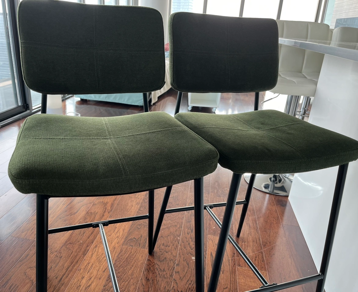 Like new counter chairs/bar stools for sale. Green color, ideal for island, kitchen counter.