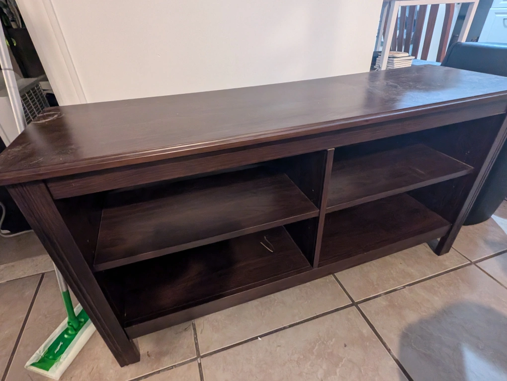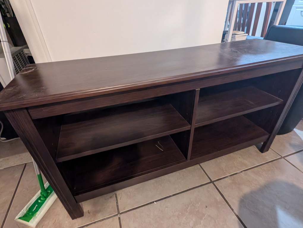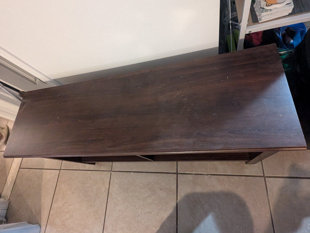 Brown console with a few scuffs and scratches but otherwise very sturdy! 120cm L x 36cm D x 63cm H Pickup near St. Clair E and Mt. Pleasant!