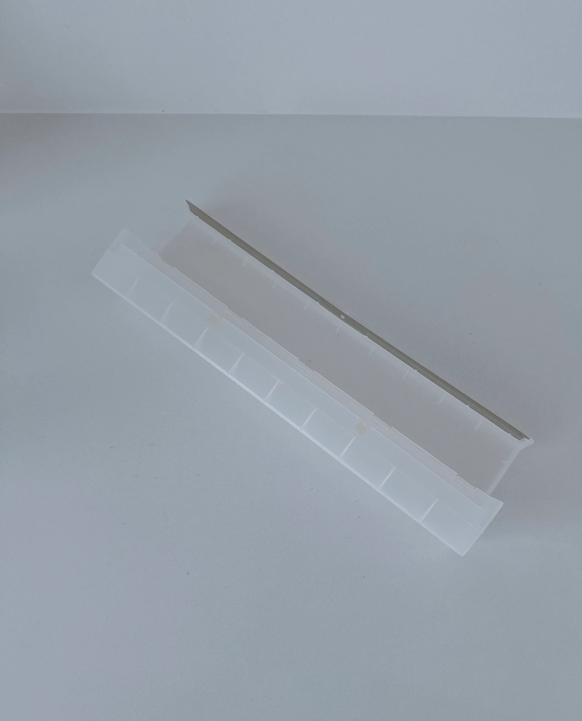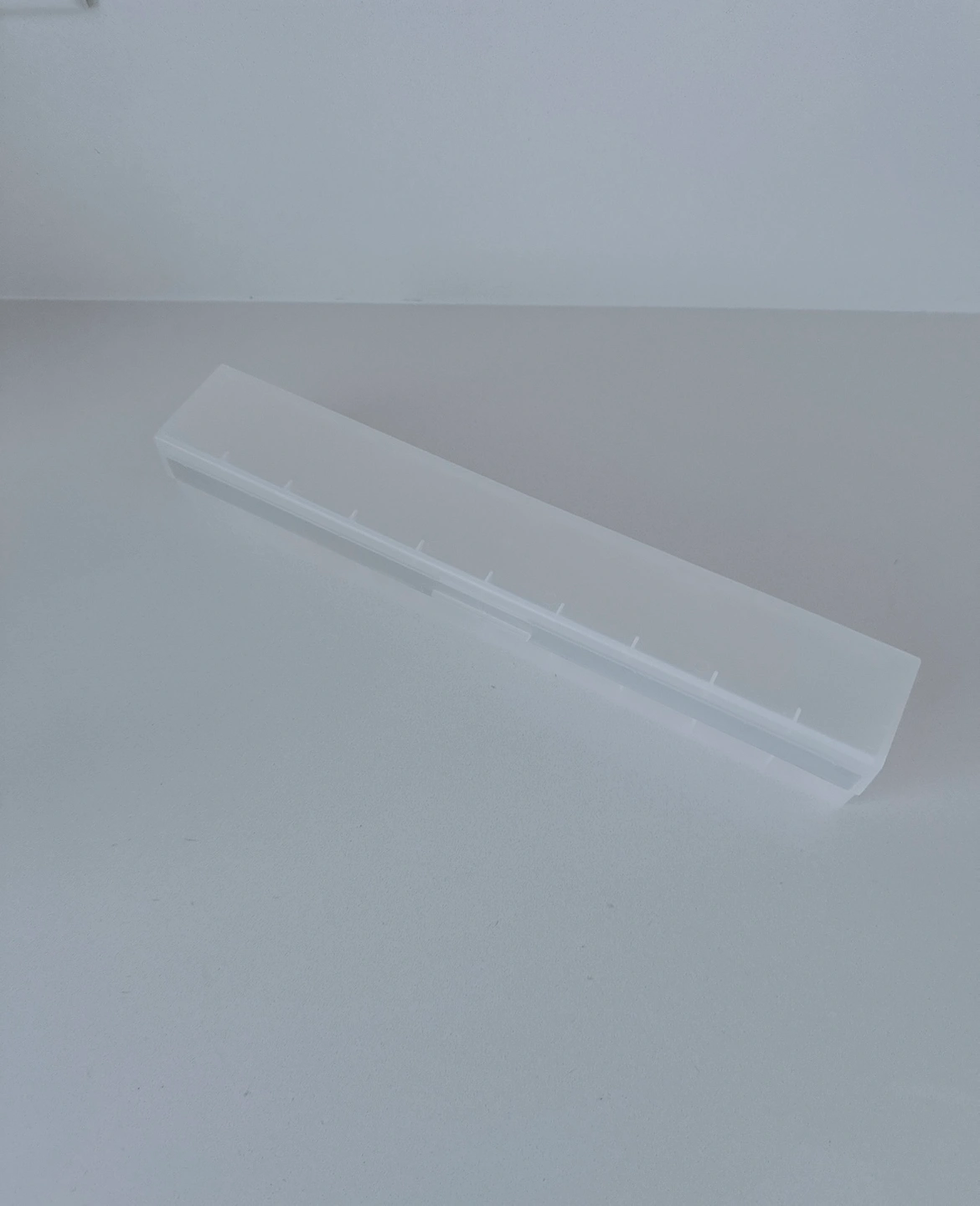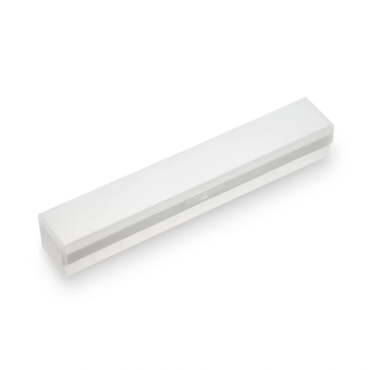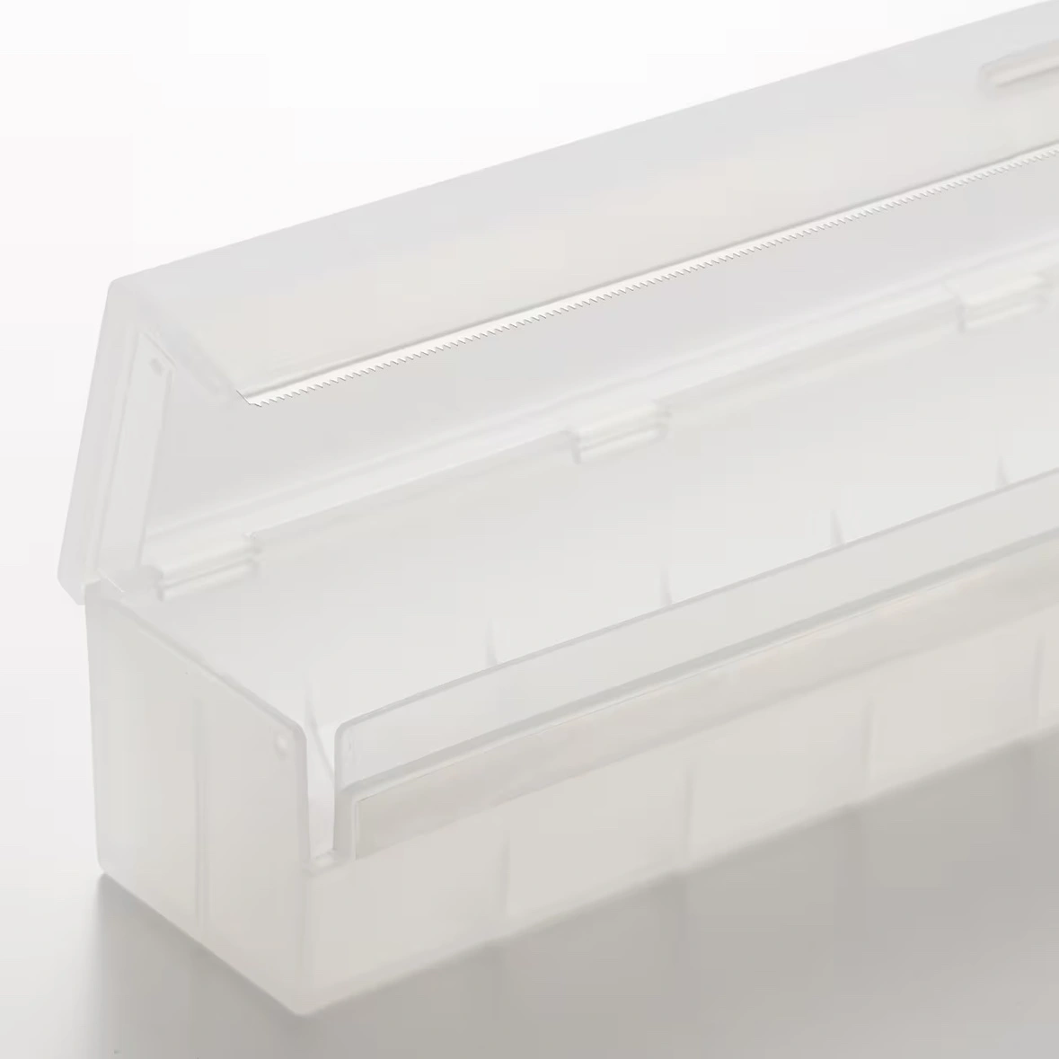 This is a case for food packaging wrap made of light and durable polypropylene material without any coloring. To prevent the wrap from rolling back or popping out, the bottom of the main body is raised and the non-slip part is long. Body: Polypropylene Blade: Stainless Steel Dimensions: W32 x D5.5 x H5cm Weight: 150g Made in Vietnam. Retail price: $20