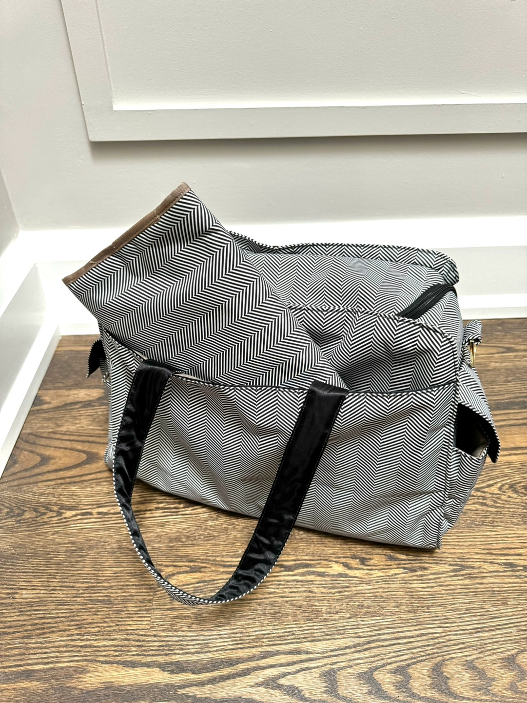 Gold hardware & beautiful herringbone pattern