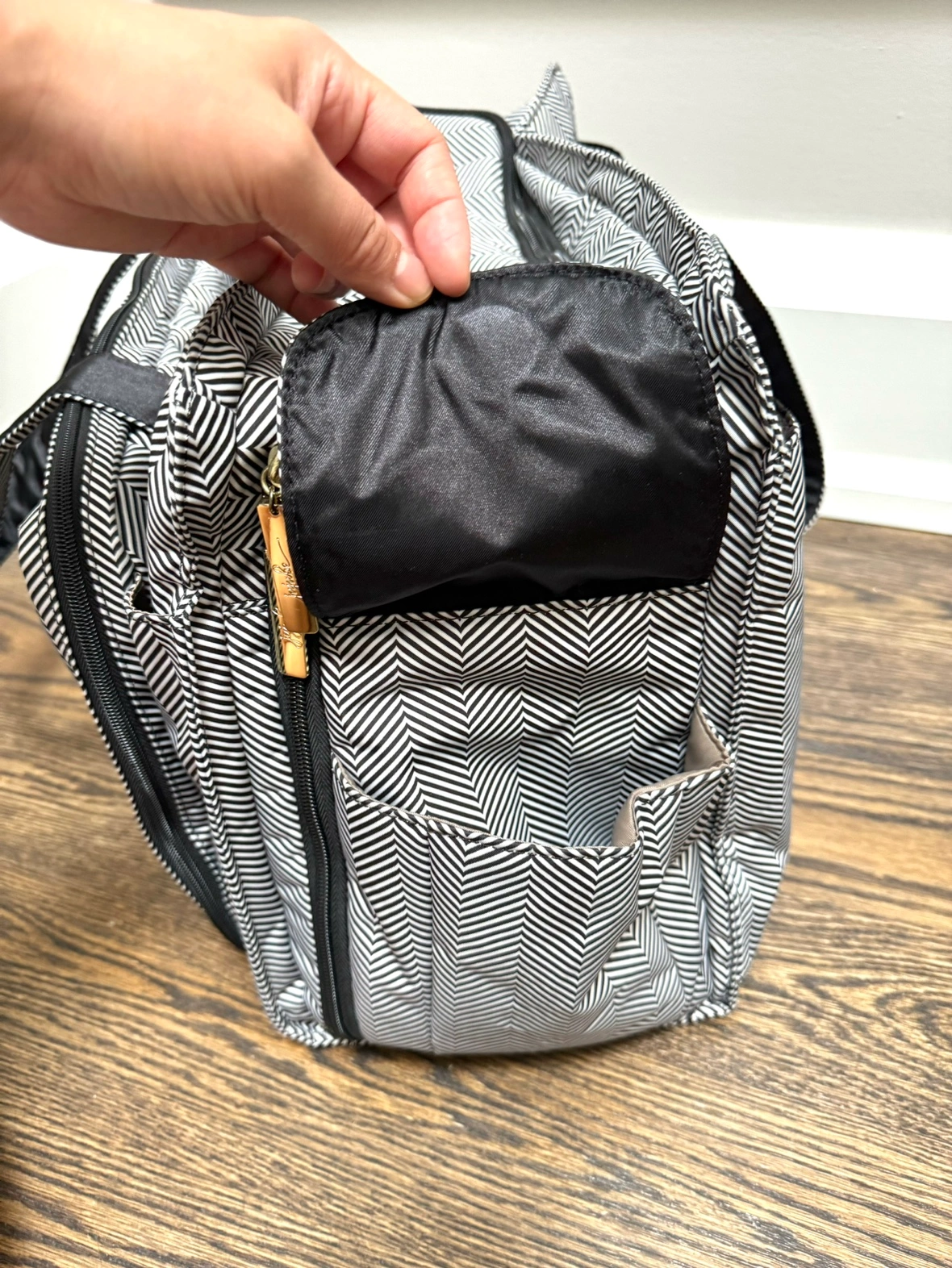 Gold hardware & beautiful herringbone pattern