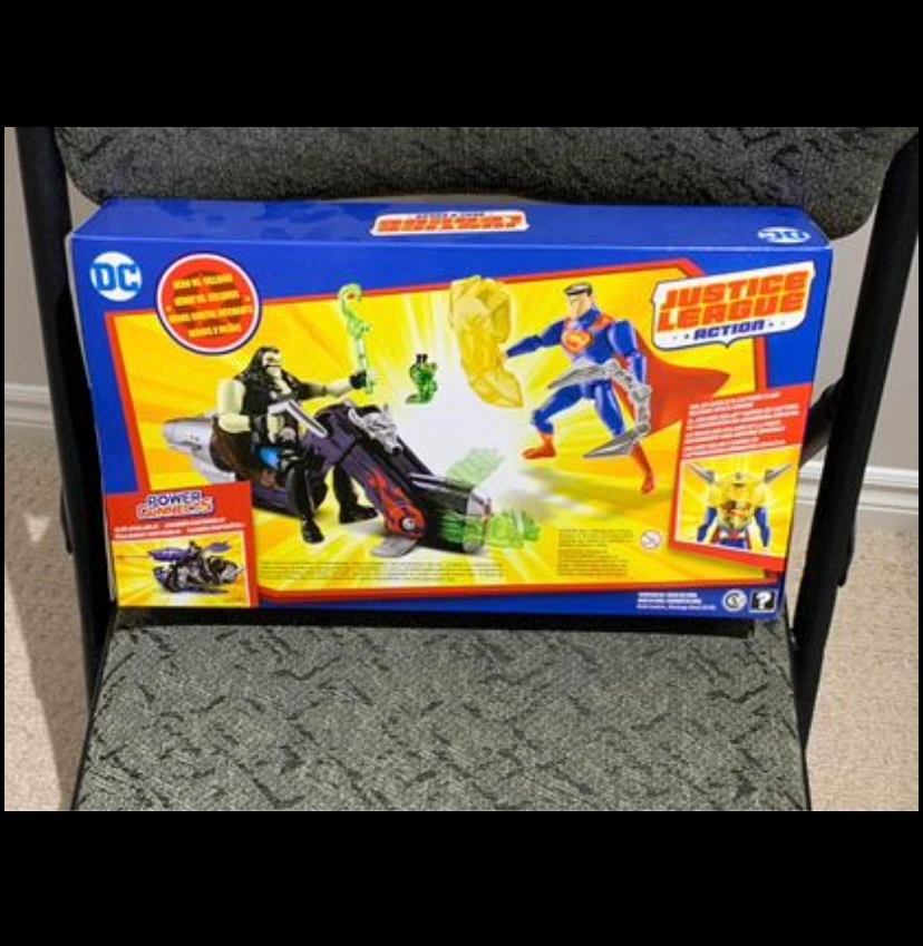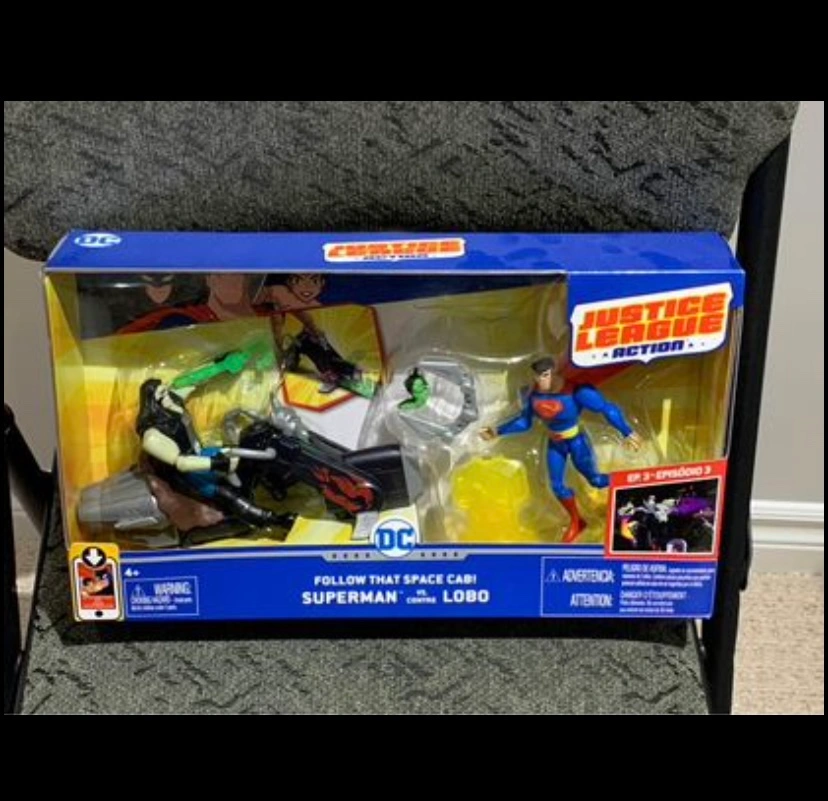 Justice League Action Superman VS. Lobo play set. Interchangeable weapons, including Lobo's Kryptonite sword, bring extra excitement to this set, and the included space chopper boasts four hidden Kryptonite cannons. Pit the 4.5-inch scale Superman figure in this Justice League Action Superman VS. Lobo play set