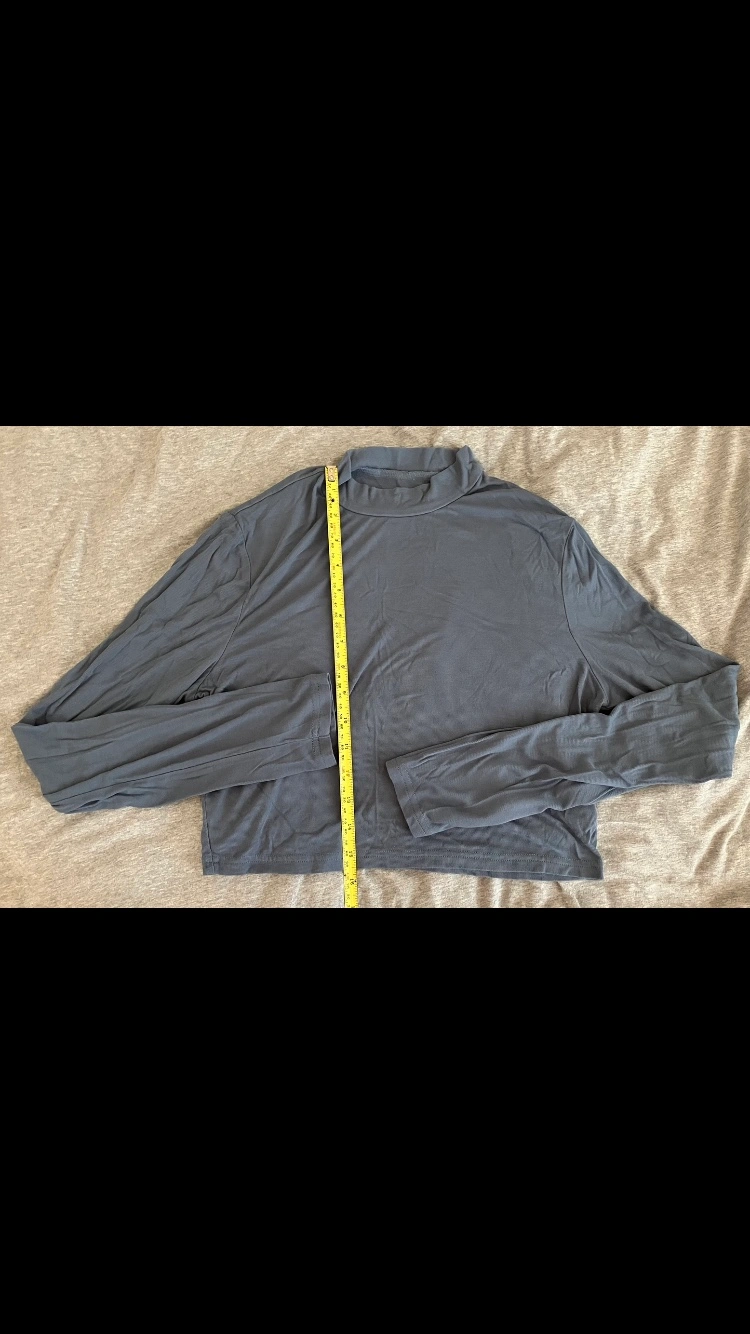 Women’s Shein basics dusty blue mock neck long sleeved crop top. Really silky feeling, lightweight Viscose material, I washed it when I first bought it, but it’s never been worn.
