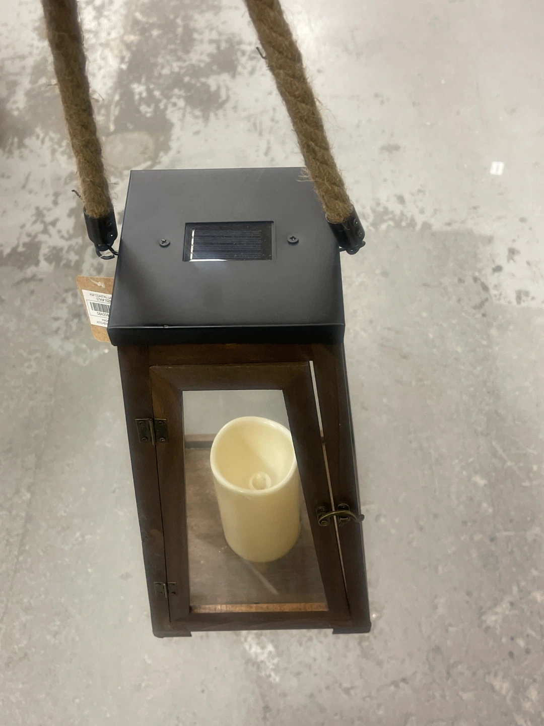 Wooden Lantern with Solar Light and Faux Candle