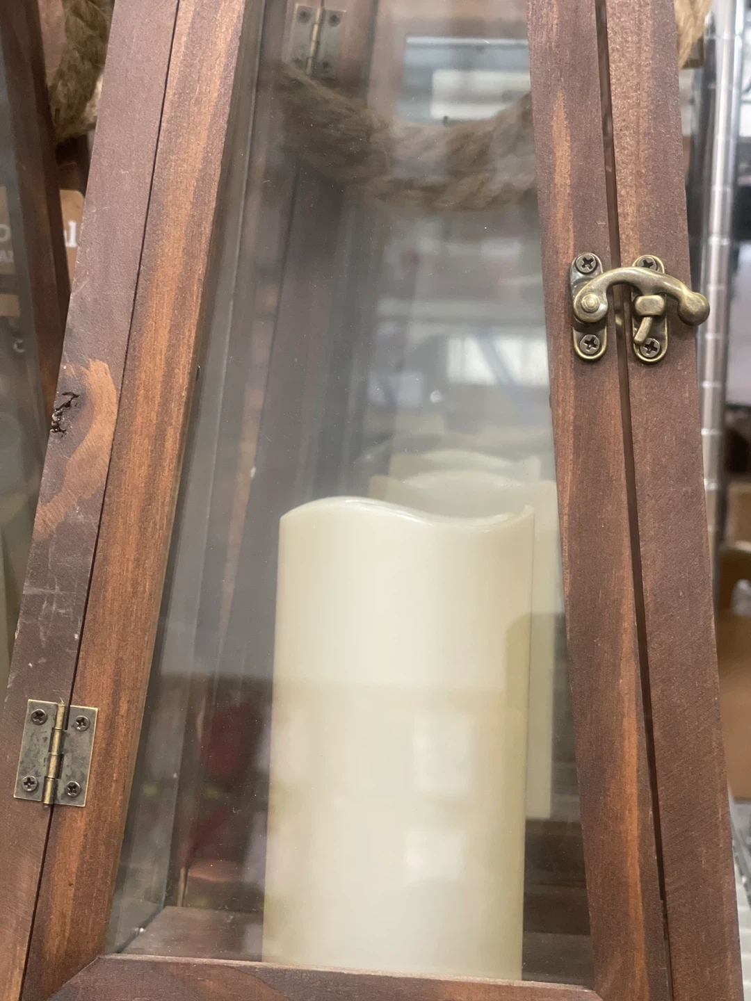 Wooden Lantern with Solar Light and Faux Candle