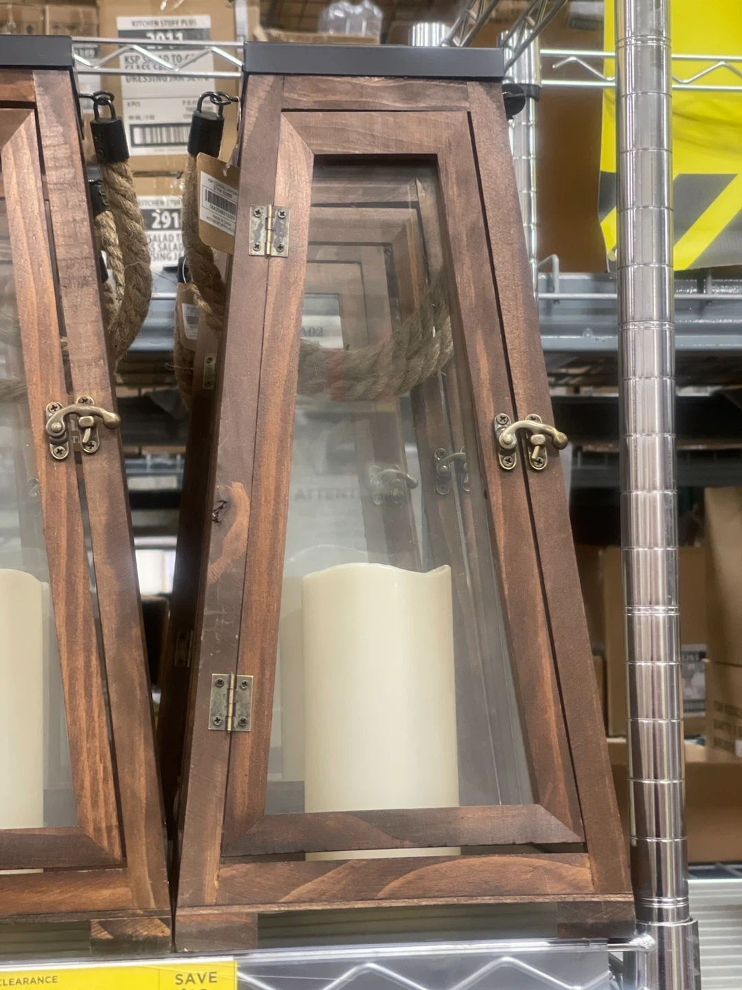 This wooden lantern features a solar-powered top light and includes a faux candle inside. It's perfect for adding a cozy ambiance to patios or indoor spaces. The durable wood and glass construction makes it a lovely decorative piece.