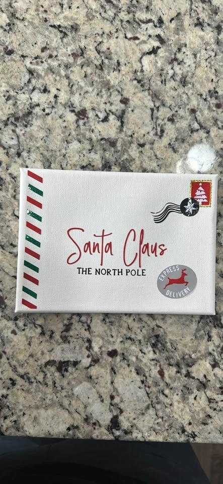 Letter to Santa, 5 x 7“ canvas. Available as is (1st picture), or with addition of name, city province, and air mail letters (2nd picture) for an additional $5. Pick up in Northwest Calgary.