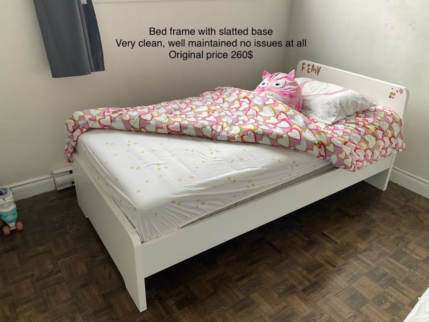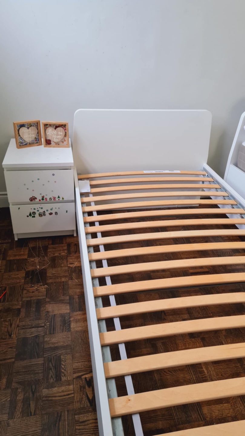 Buy & SellIKEA HEMNES White Twin Bed Frame with Slatted BaseIKEA HEMNES White Twin Bed Frame with Slatted Base$100White twin bed frame. Slatted base included. Clean and well-maintained. Originally $260.WHERE TO MEETThe Peel TowerView MapSELLERHanCooksville272 reviews2 chats·0 favorites·62 viewsSEND CHAT TO SELLERHi Han! I’m interested in your listing.Hi Han! I’m interested in your listing.Get the Karrot app to chatSign In to chat