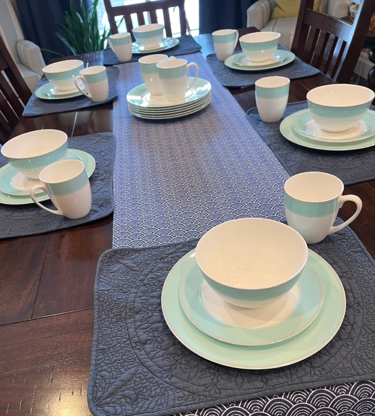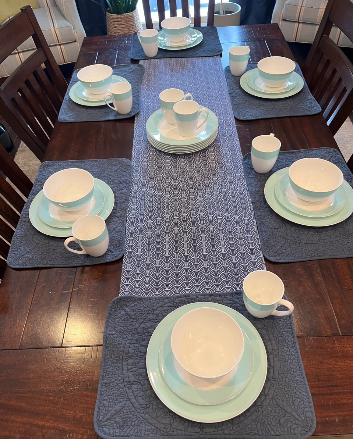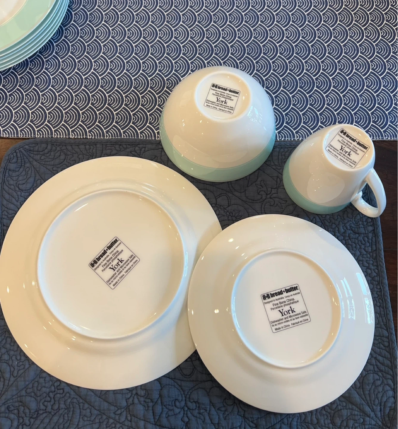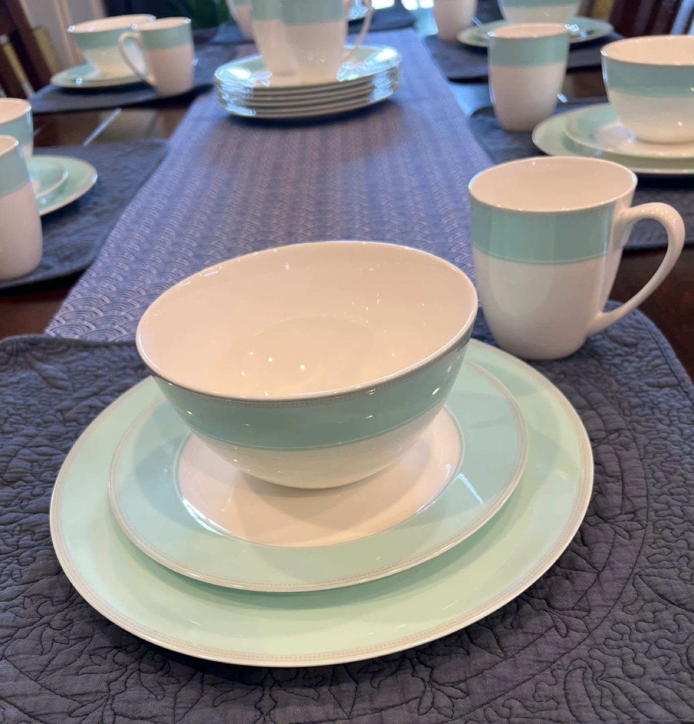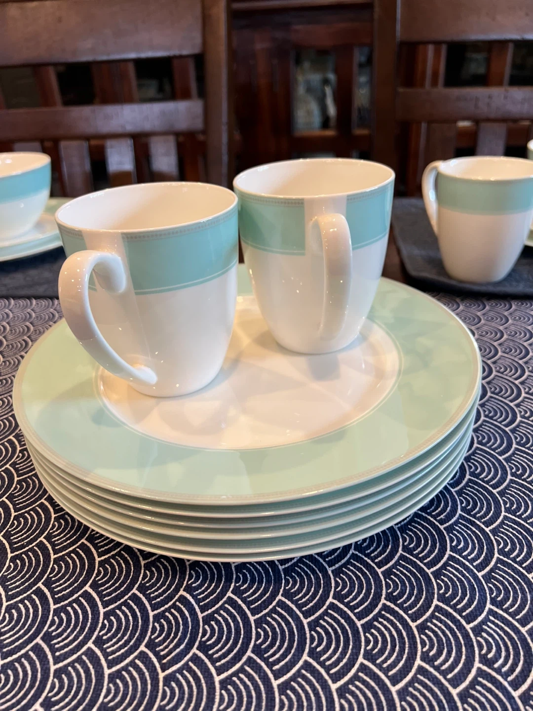 4 piece setting for 6 people with extra pieces (additional 6 dinner plates and 2 cups/mugs)
