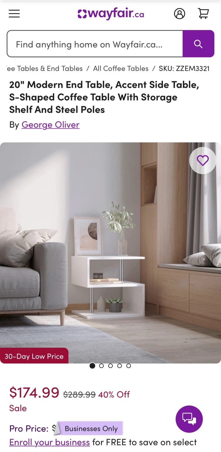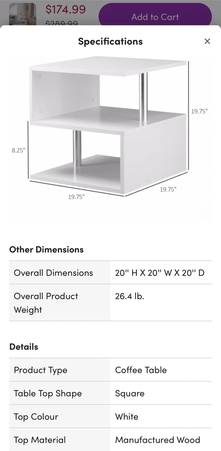 Buy & Sell20” Wayfair white modern Coffee/ Side/ End Table20” Wayfair white modern Coffee/ Side/ End Table$32Almost new white two-tier side table with silver accents. Great for next to a couch or bed! Assembled!WHERE TO MEET623 Finch Ave WView MapSELLERArpitaBathurst Manor292 reviews1 chats·2 favorites·154 viewsSEND CHAT TO SELLERHi Arpita! I’m interested in your listing.Hi Arpita! I’m interested in your listing.Get the Karrot app to chatSign In to chat
