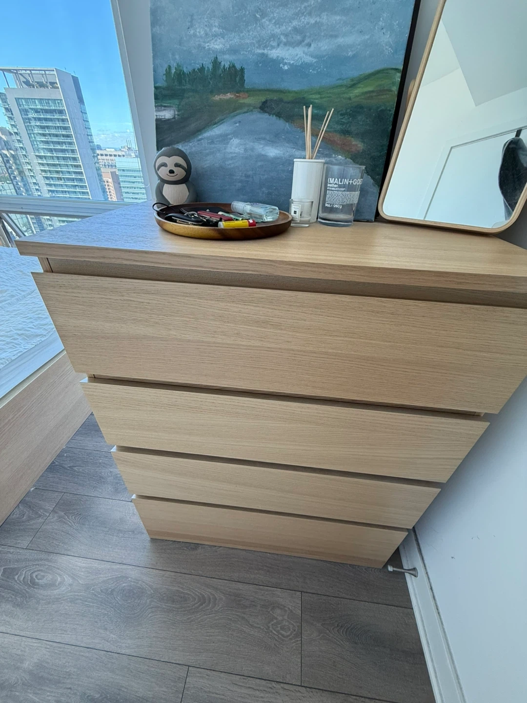 Selling an IKEA STORLINTA 4-drawer chest in oak effect. It's in great shape and ready for a new home! The dimensions are 70x48x98 cm (27 1/2x18 7/8x38 5/8 "). Pick up from condo apartment.