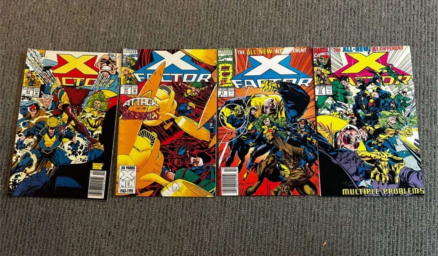 This is a lot of various Marvel and DC comic books. Includes X-Men, X-Force, X-Factor, Spider-Man, Justice League, and DC Connect titles. Issues vary from the 1990s and early 2000s, with some newer DC titles from 2023. A great collection for any comic fan!