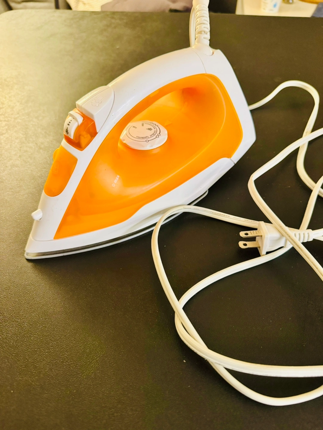 Iron with temperature control and a water tank.