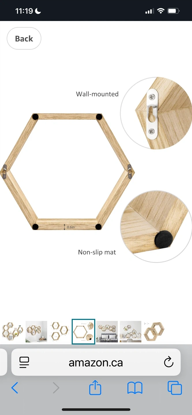 Set of 6 Hexagonal Wood Shelves