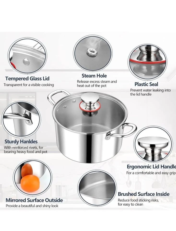 Both brushed surface interior and mirror finished surface exterior can reduce the risk of food sticking and provide a smooth touching. The pot and lid have smooth edges with no sharp place and no dead corner. Easy to clean by hand, and dishwasher safe.