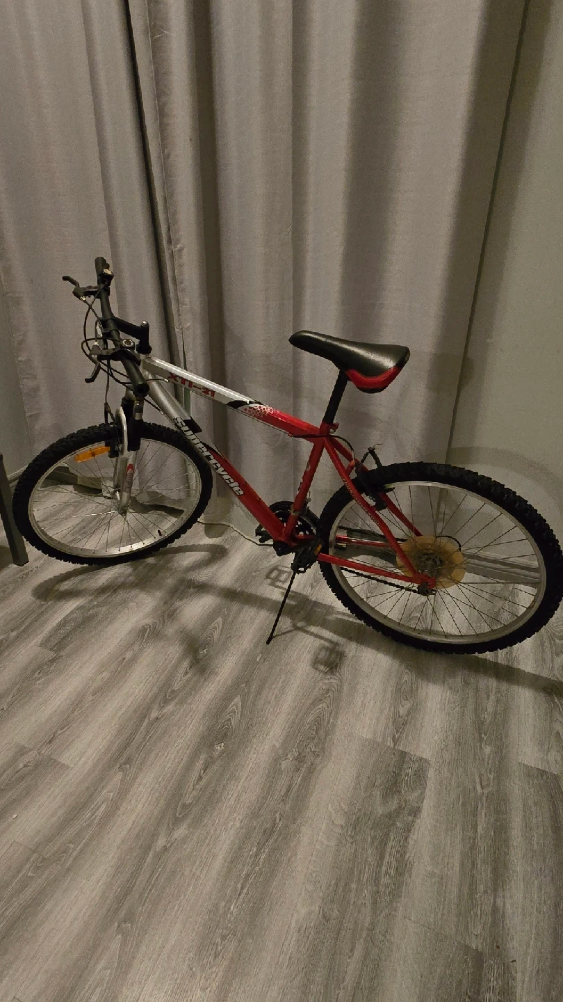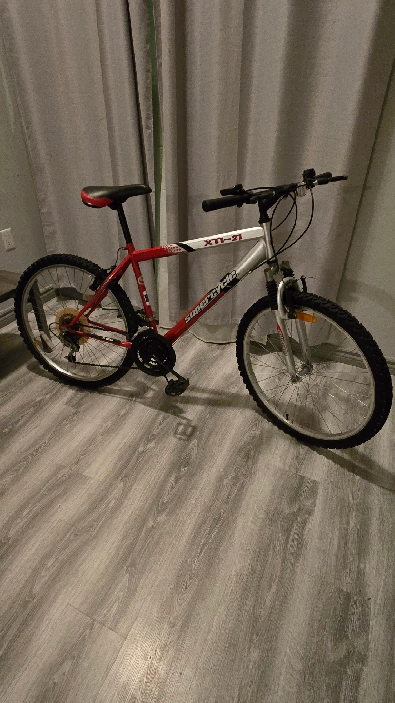 10Selling a Supercycle XTI-21 mountain bike! It's in good condition and ready for some trails or city riding. The frame is a vibrant red and silver colour. Perfect for someone looking for an affordable and reliable bike
