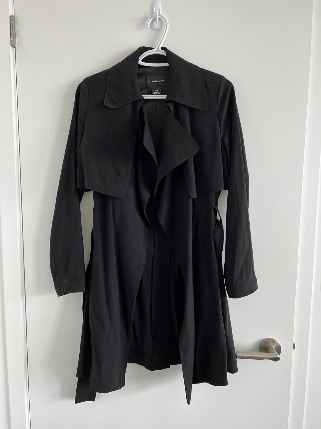 Buy & SellNew Club Monaco black trench coatNew Club Monaco black trench coat$40Never worn trench coat. Perfect for fall and spring. Size XS. Pickup is Church and CarltonConditionNewSizeXSWHERE TO MEETChurch and WellesleyView MapSELLERJennyChurch and Wellesley13547 reviews0 chats·2 favorites·248 viewsSEND CHAT TO SELLERHi Jenny! I’m interested in your listing.Hi Jenny! I’m interested in your listing.Get the Karrot app to chatSign In to chat