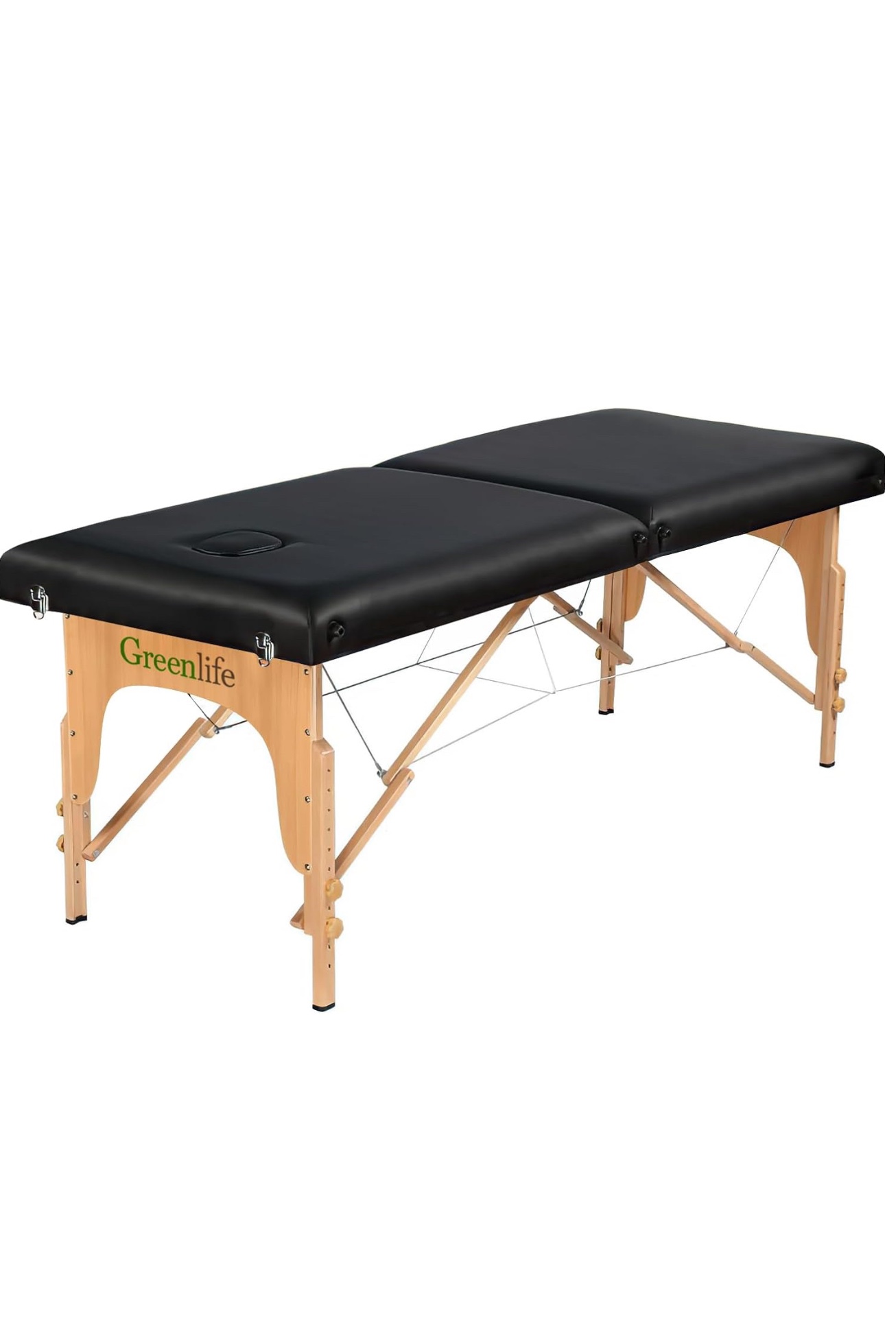 GreenLife® Basic™ Super Stable 28 Inches Width Height Adjustable Portable 2 Fold Massage Reiki Facial Table Bed (Table Only, Black, without Carrying Bag & Head Rest & Arm Rests)