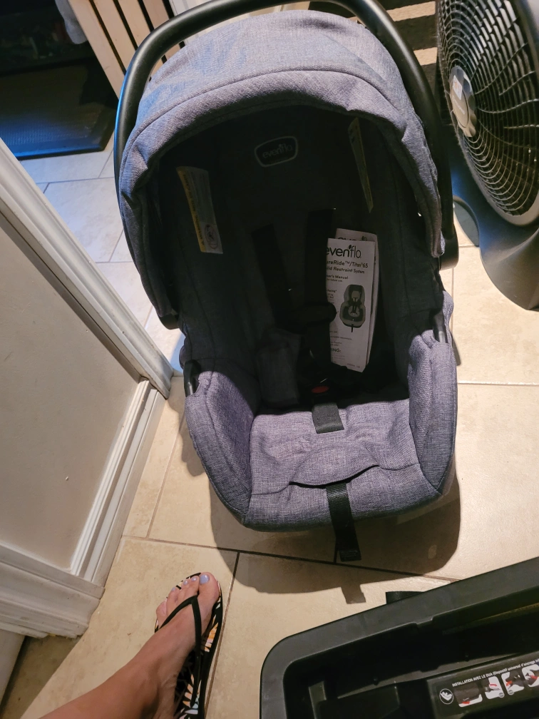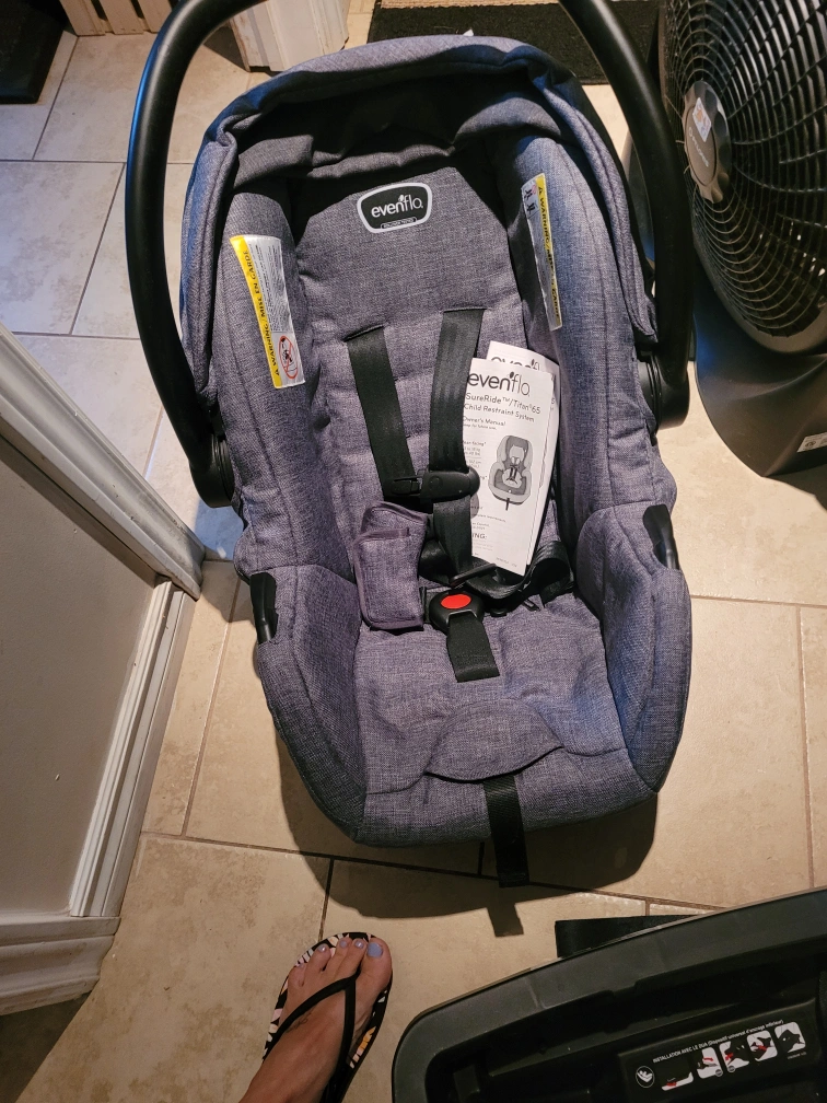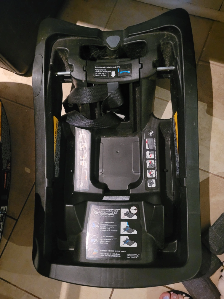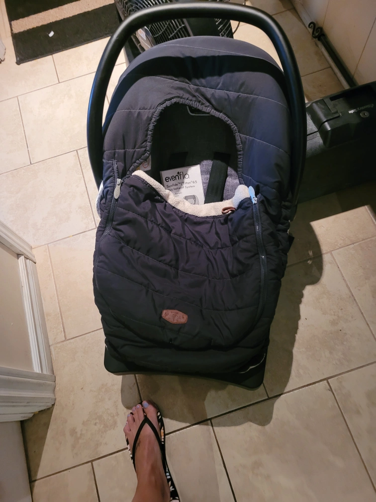 Also comes with the base to lock it into your car and it comes with the cover for when you're on walks or trying to get the baby to the car in bad weather