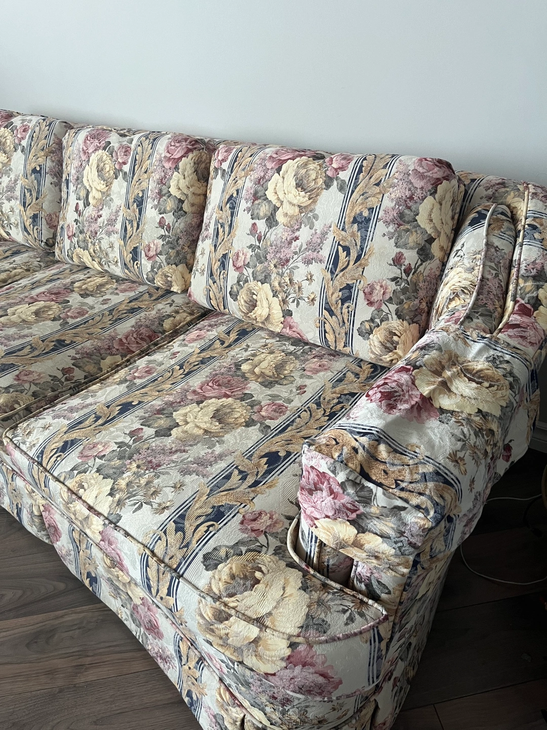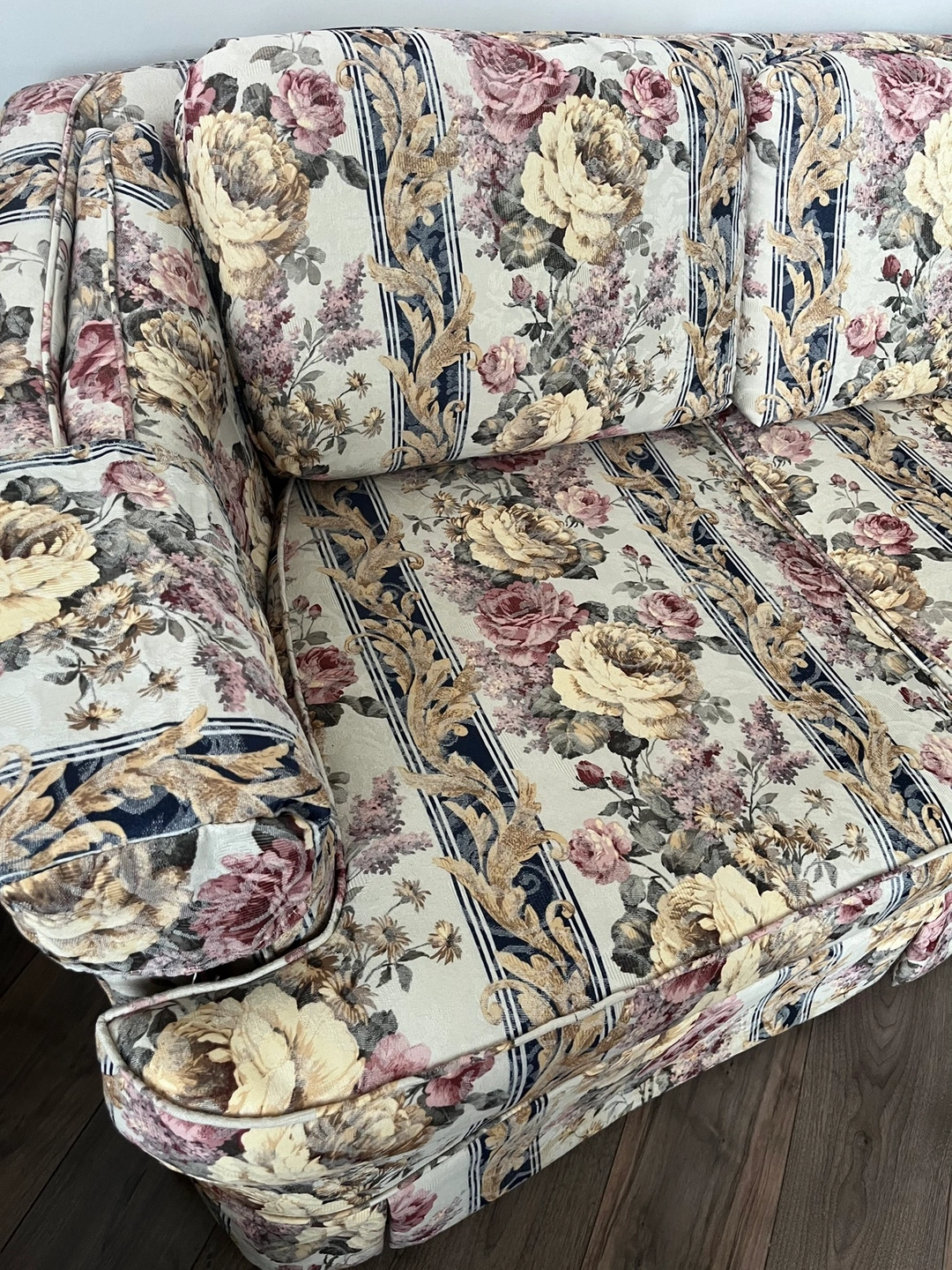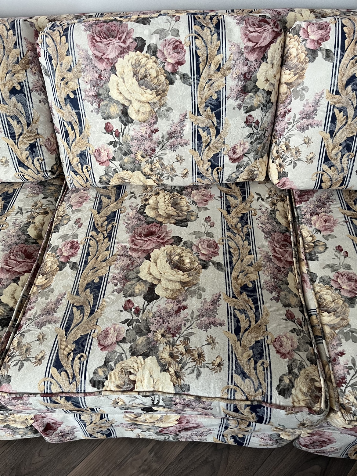 This beautiful 3-seater couch features a bold and beautiful flower print