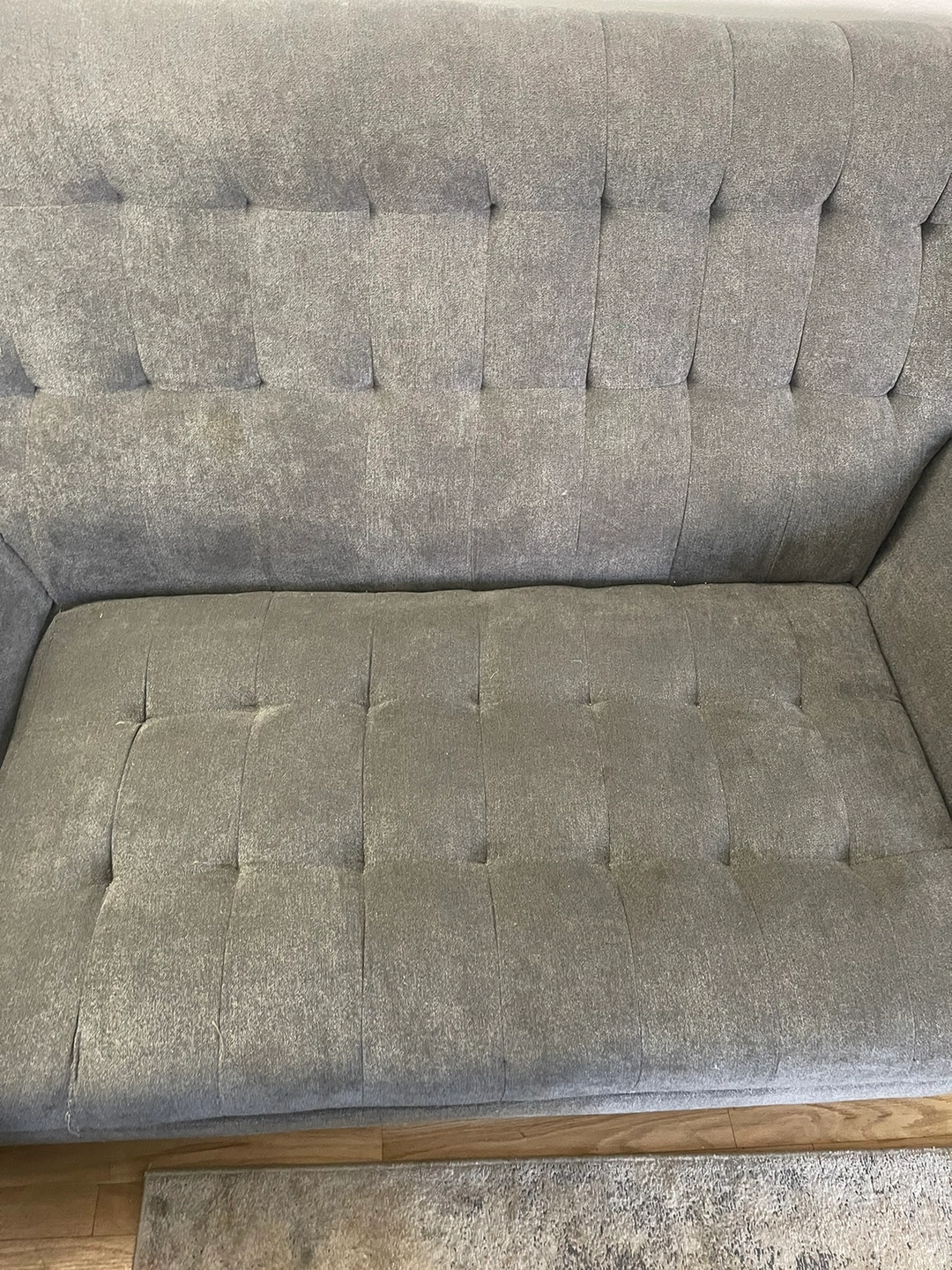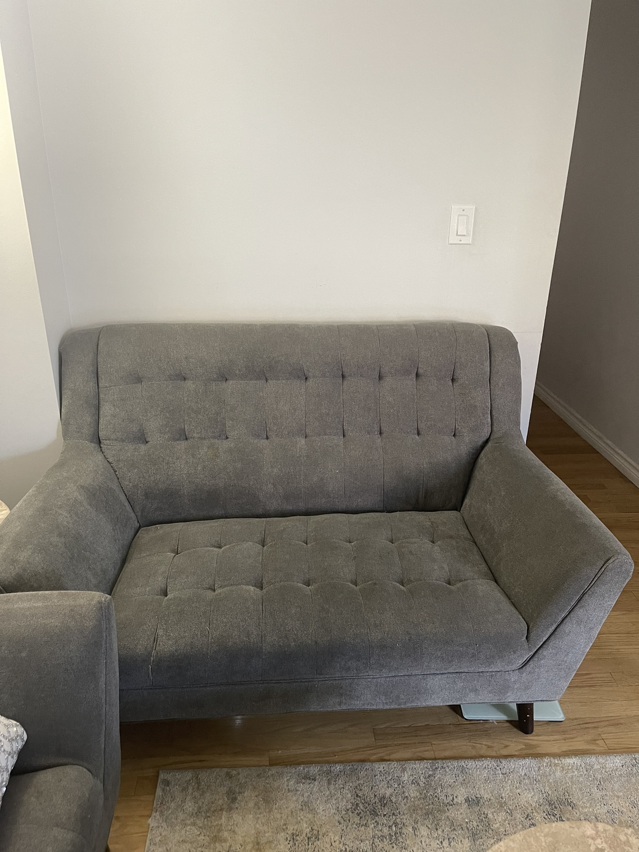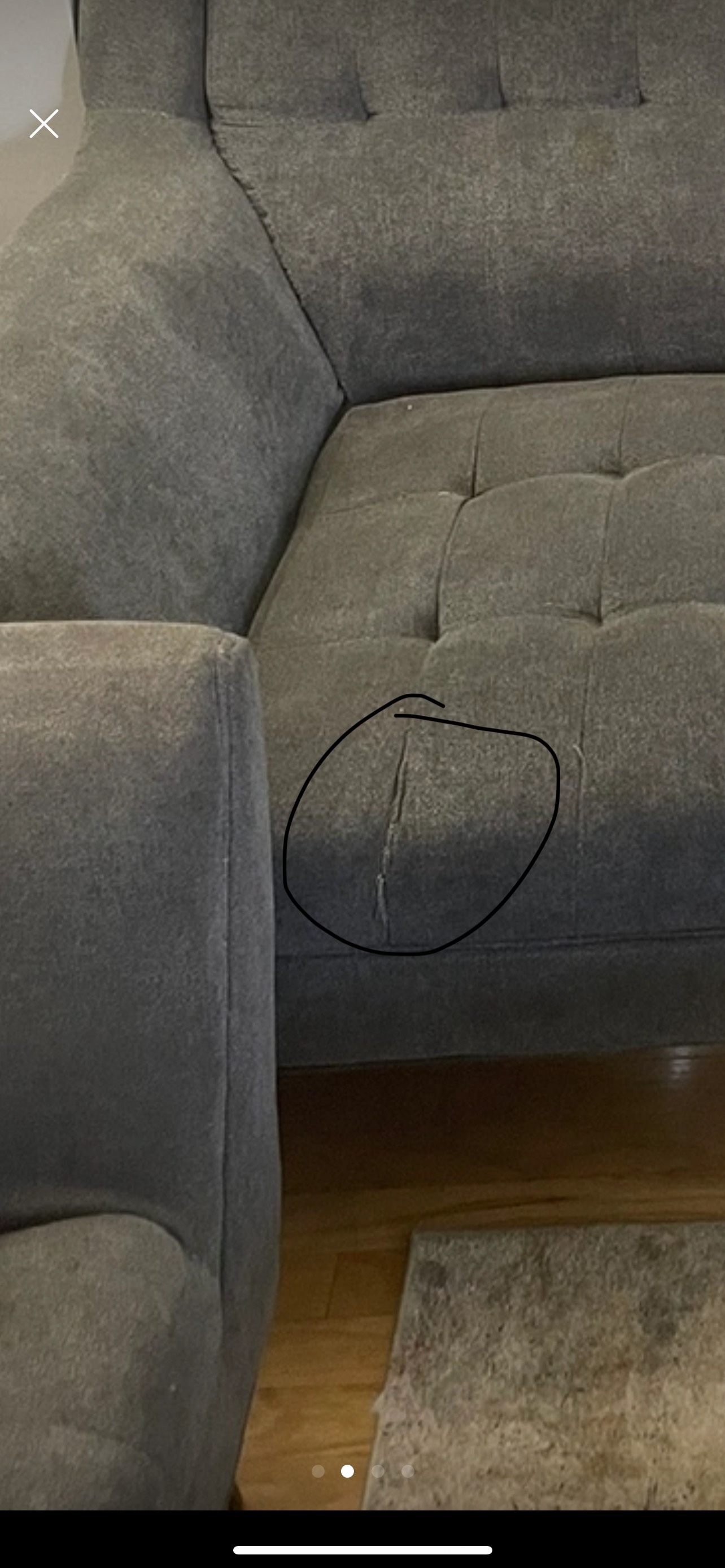 Small 2” rip on the love seat only. Can be sewn with a needle