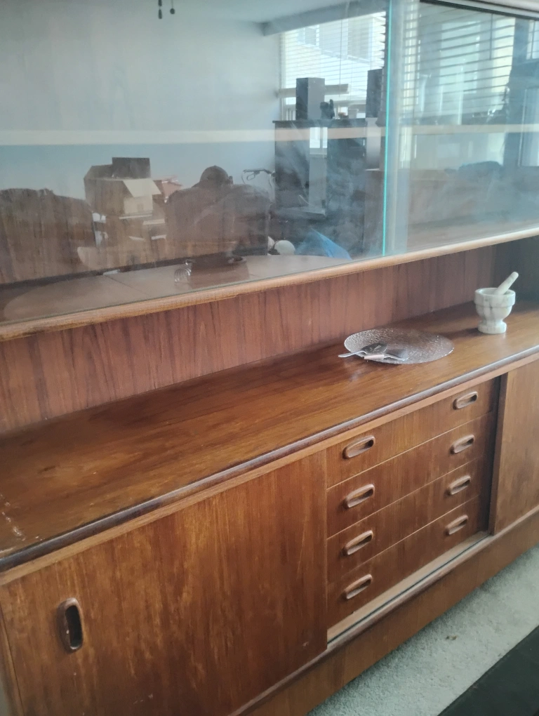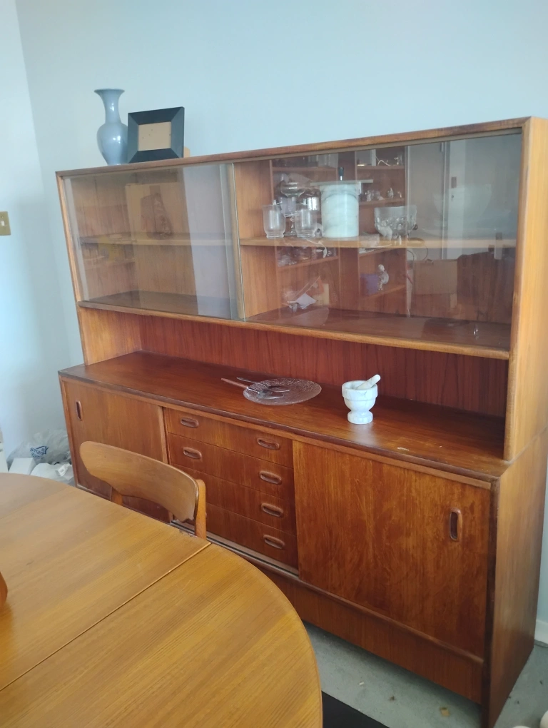 Hi Karrots π₯π₯β£οΈ Don't Miss out on this Deal ππ¦ Thanks so much for shopping with me βΊοΈ Absolutely stunning Vintage Teak Side Board Needs a lil love ππ¦ You will not find this again Needs a polish and good cleaning Must Go! Have a Wonderful day! There's a beautiful Mid Century Table and 4 chairs needs a bit of love too not much.