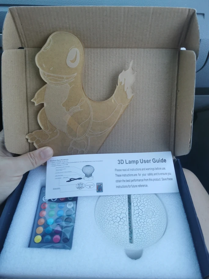 616This is a 3D illusion lamp of Charmander from the Pokemon franchise. It comes with a remote to change the colours of the light.