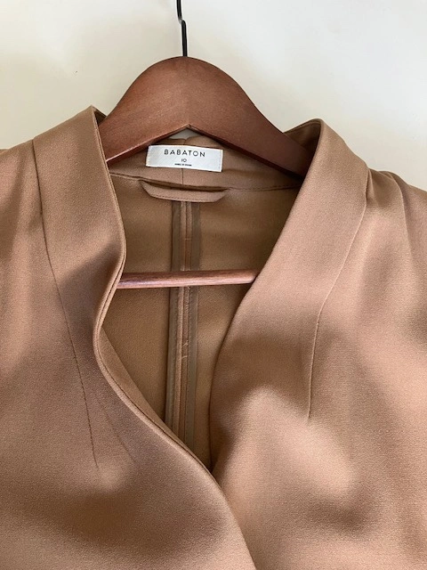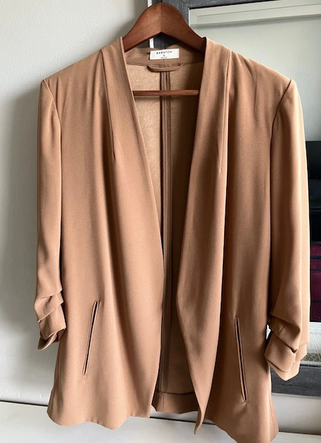 144Aritzia Babaton New Power open front blazer. Japanese crepe fabric. Very good condition. Size 10. Saville (camel brown) colour. Price $25. Can also meet downtown (Yonge/King).