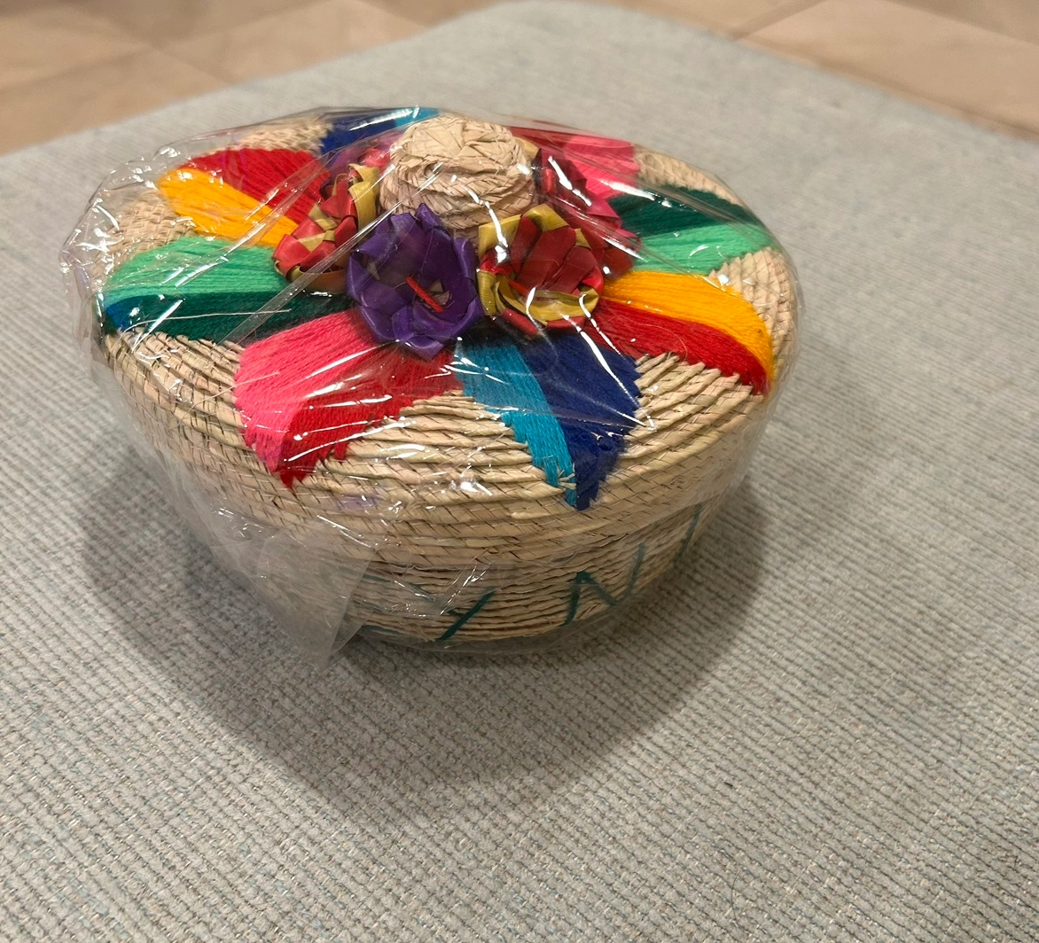 1000+Brought it as an extra souvenir gift from Mexico a few months ago. I think this is the right time to give it away. It is NEW and can be used to keep tortillas warm, cookies, bread or even a Jewelery. Dia 8” x 3” Depth