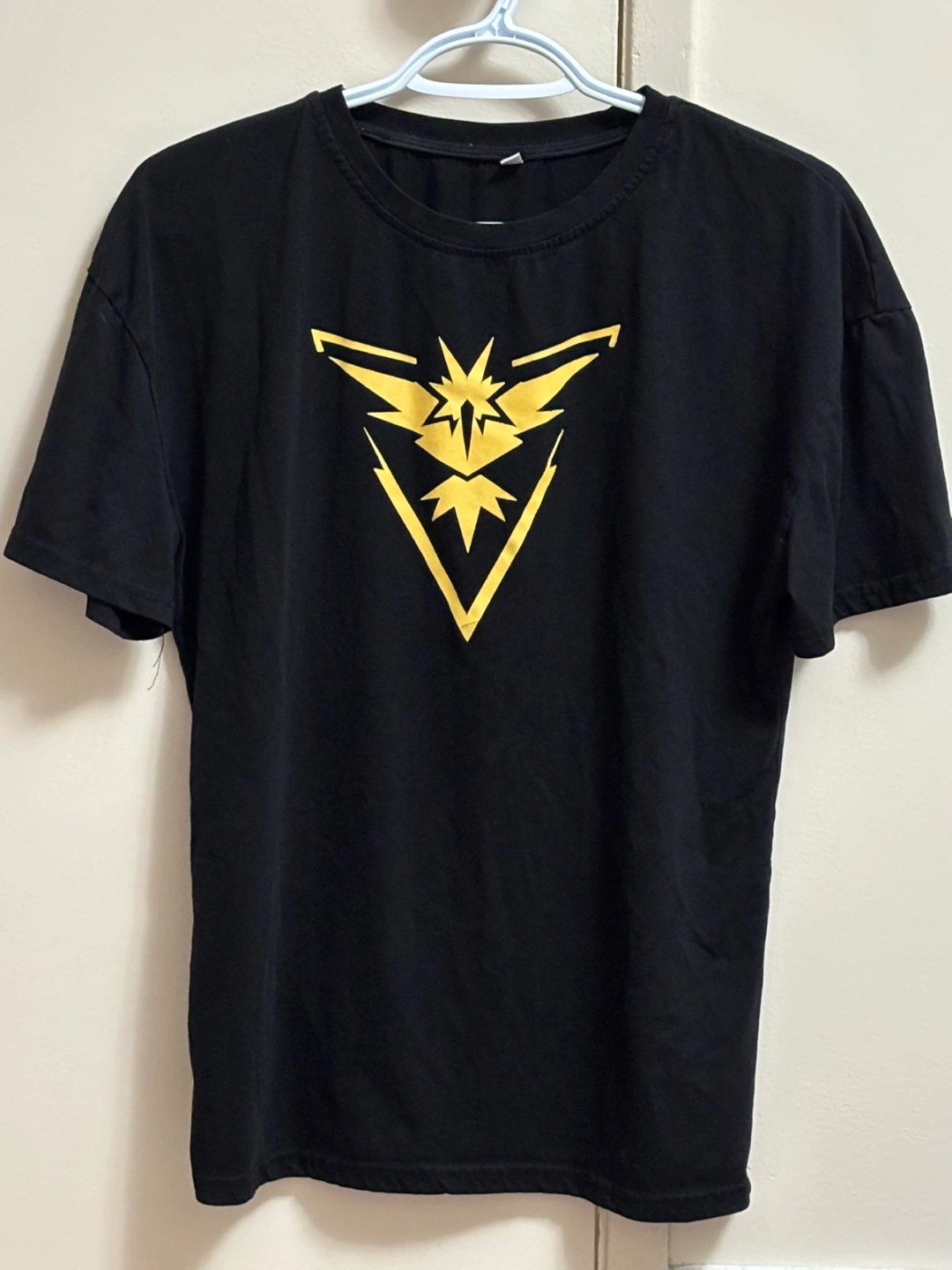 Selling a black t-shirt featuring the Pokémon Go Team Instinct logo. It's in great condition and perfect for any Pokémon fan! Sizes youth large 14 to 16.