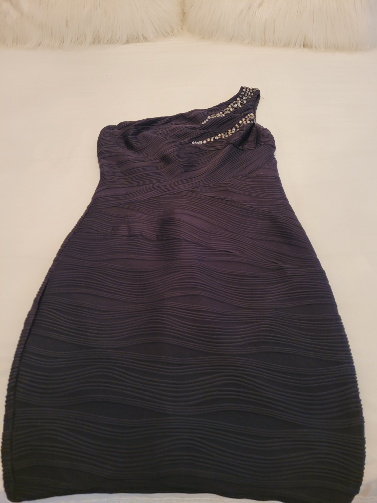 Buy & SellOne Shoulder Embellished Dress Size M/L EXCELLENT CONDITIONOne Shoulder Embellished Dress Size M/L EXCELLENT CONDITION$20**IN EXCELLENT CONDITION WORN 1 TIME** A black one shoulder dress with a fitted silhouette and rhinestones on the shoulder.ConditionLike newSizeSize M/L1 chats·2 favorites·48 viewsSELLERValentinaKleinburg262 reviewsWHERE TO MEETCheck Location